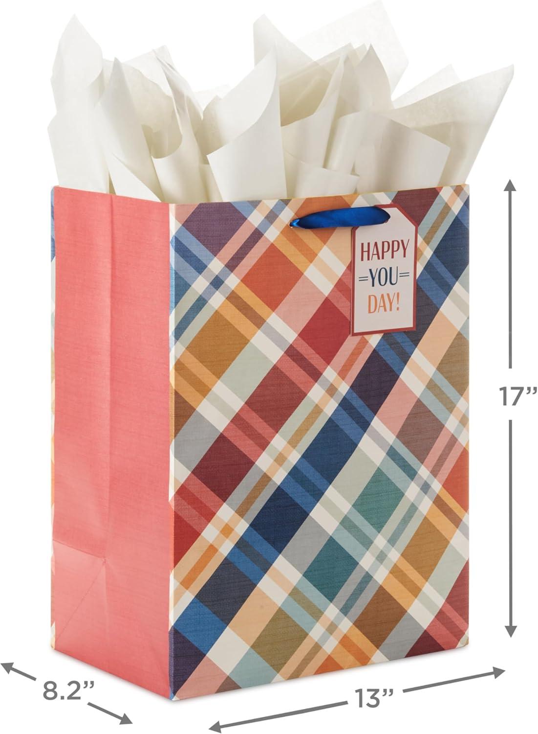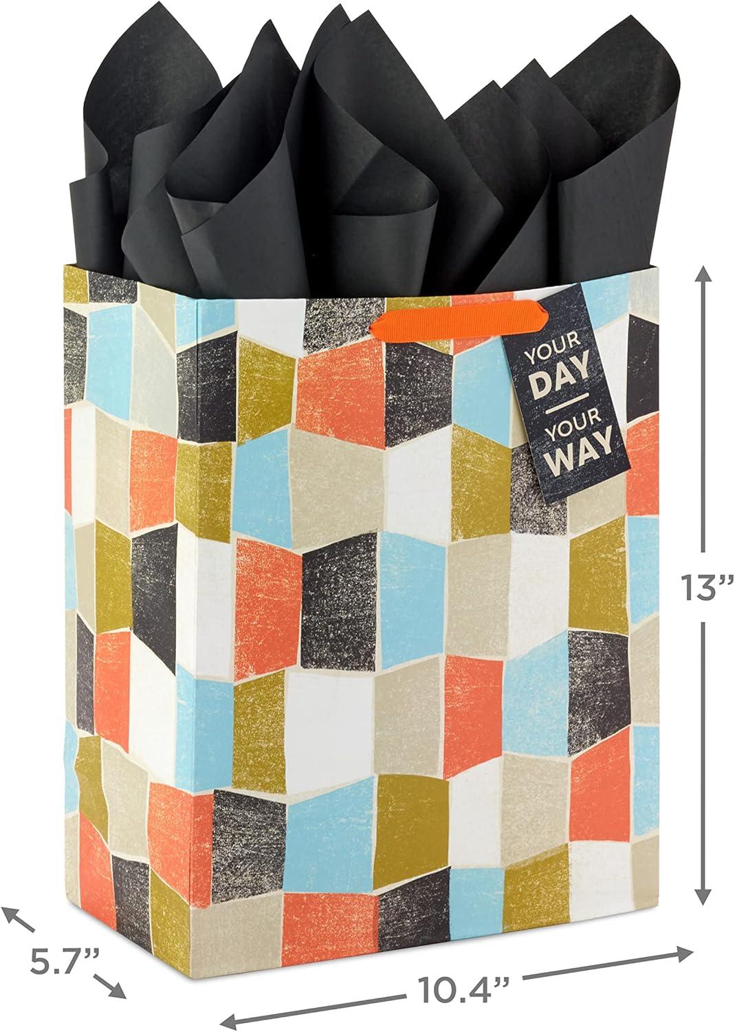 Hallmark Wrap 13″ Large Gift Bag with Tissue Paper, 130, Orange, Blue, Green, Black(Your Day Your Way)