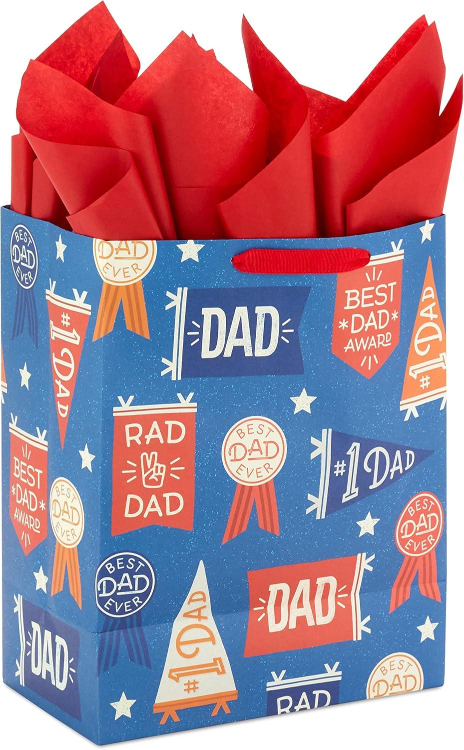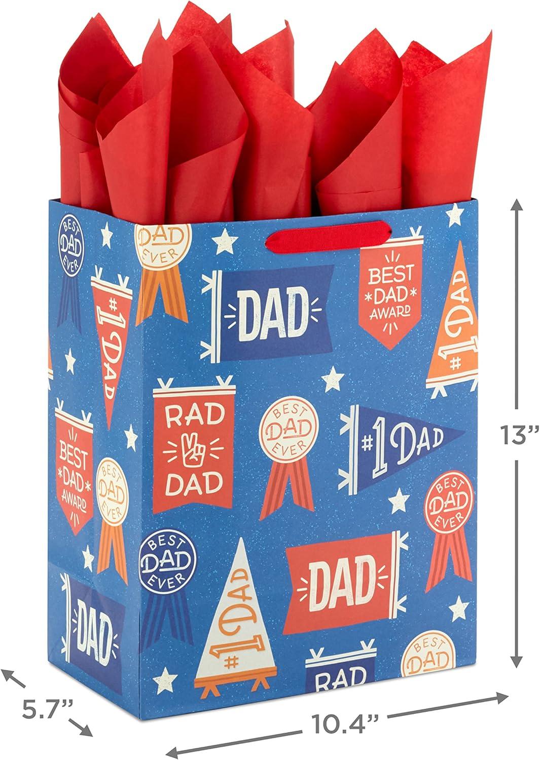 Hallmark Wrap 13″ Large Gift Bag with Tissue Paper, 130, Orange, Blue, Green, Black(Rad Dad Best Dad Ever)