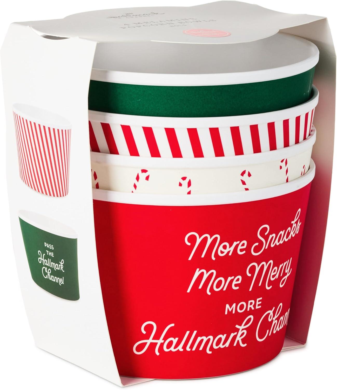 Hallmark Channel Holiday Movie-Watching Popcorn Snack Bowls (Set of 4) for Christmas Parties, Movie Nights, Celebrations