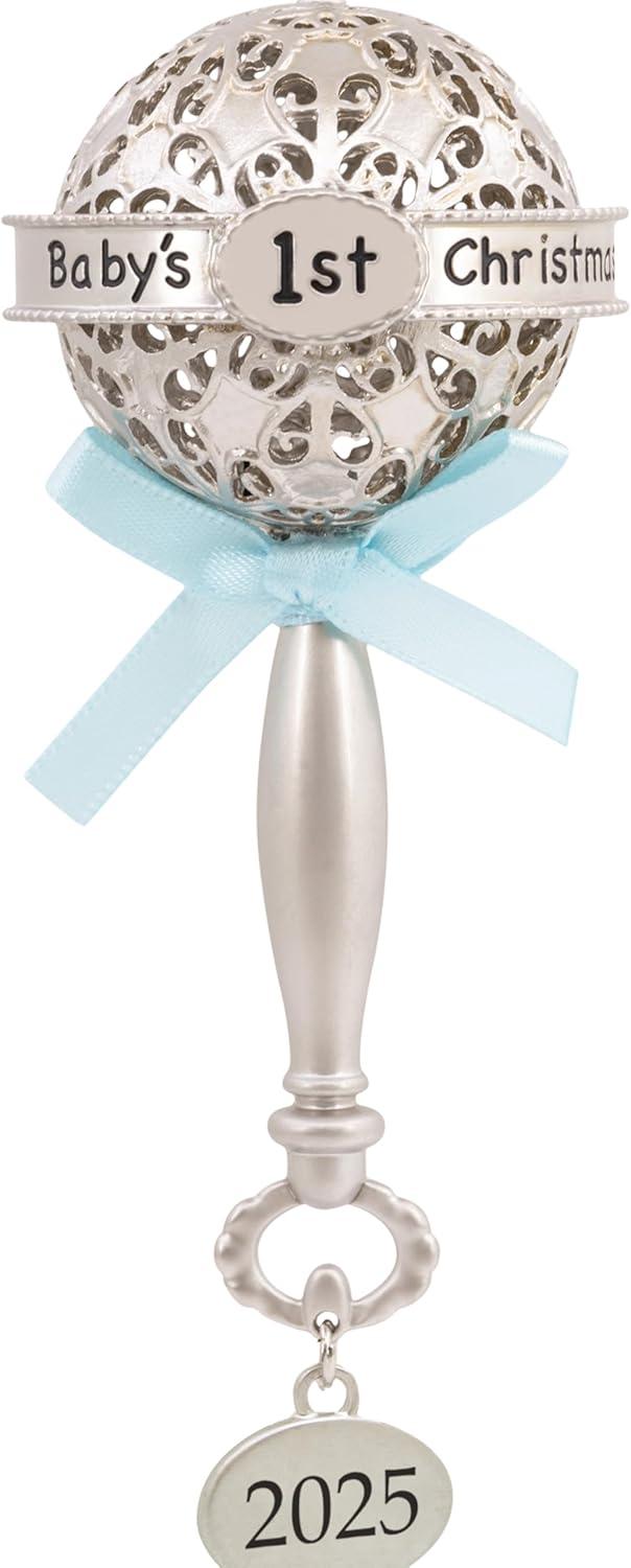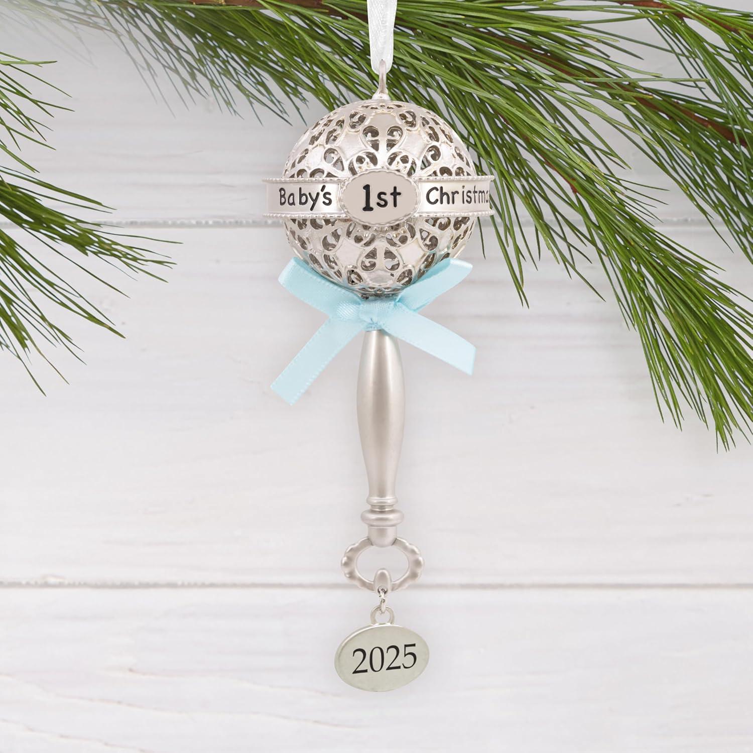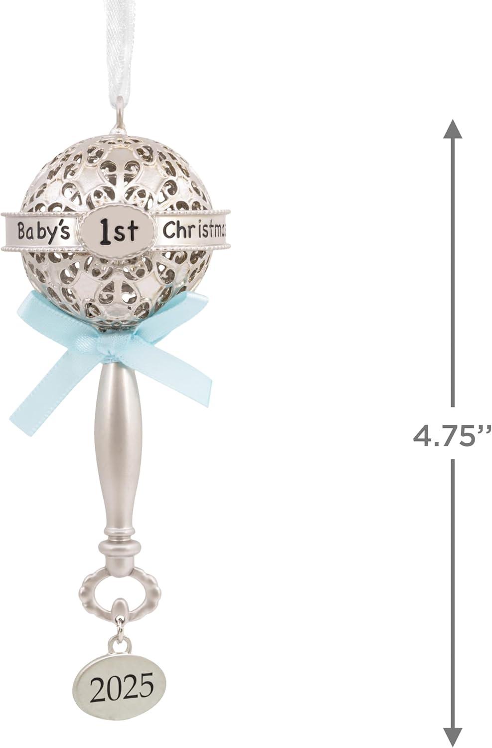 Hallmark Baby’s First Christmas Silver Rattle with Blue Ribbon 2025 Christmas Ornament, Metal, New Baby Gifts