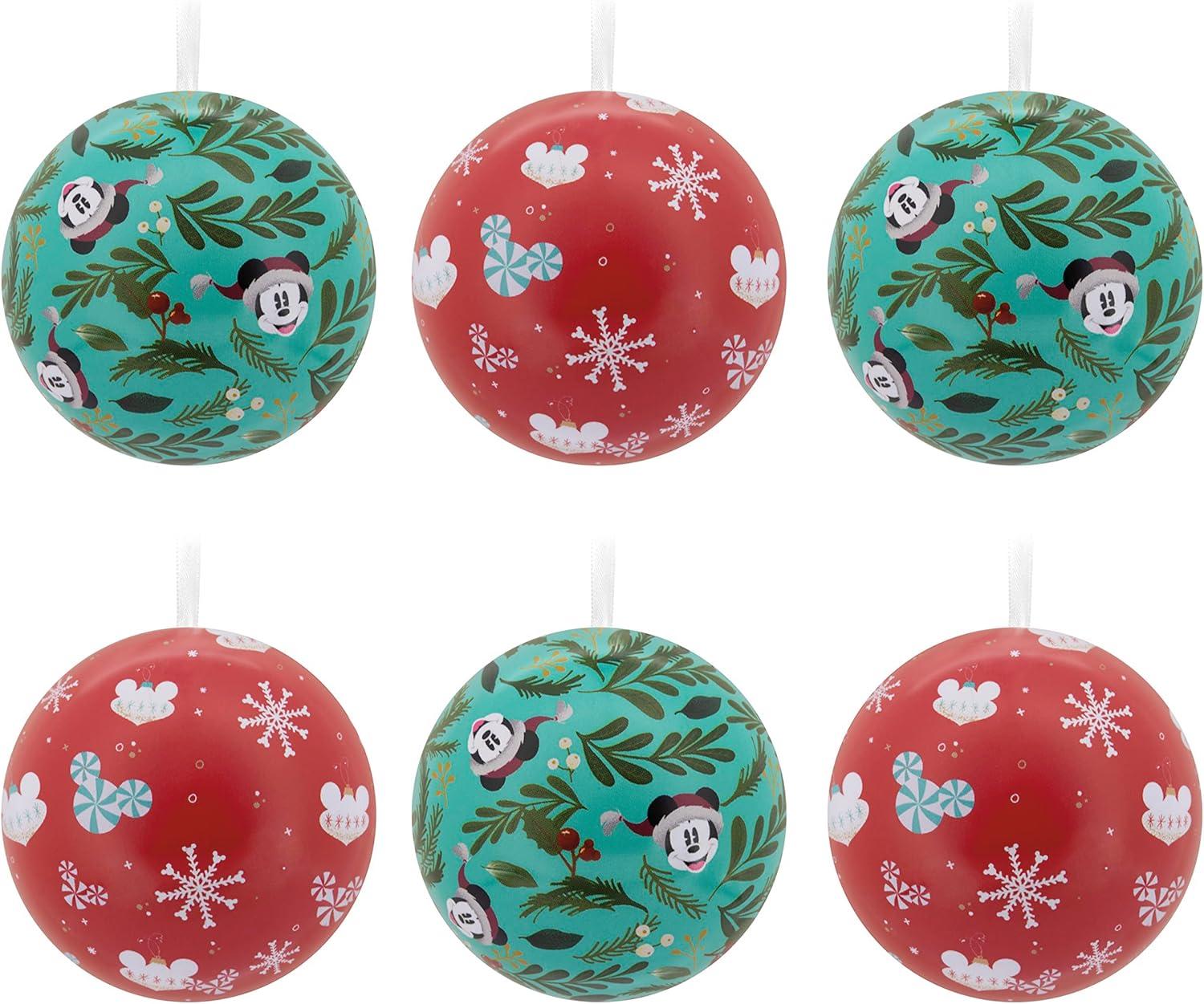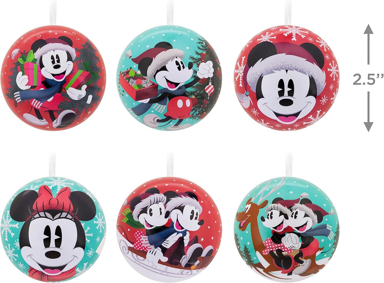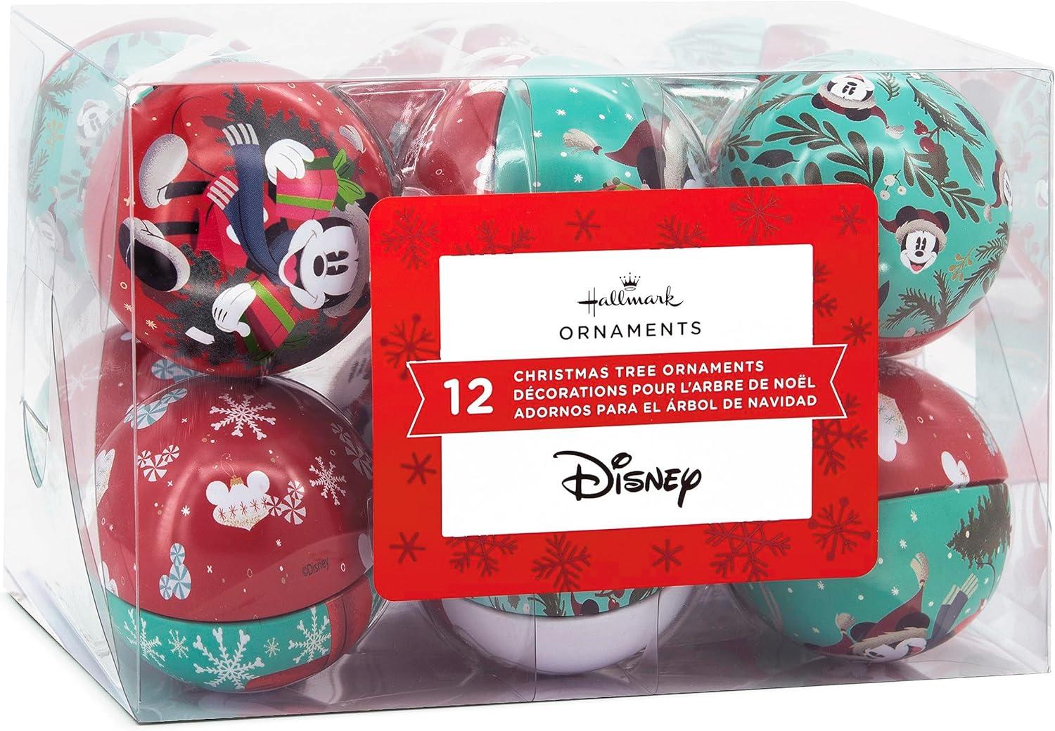 Hallmark Disney Mickey Mouse and Disney Minnie Mouse Christmas Ornaments, Tin Ball, Set of 12