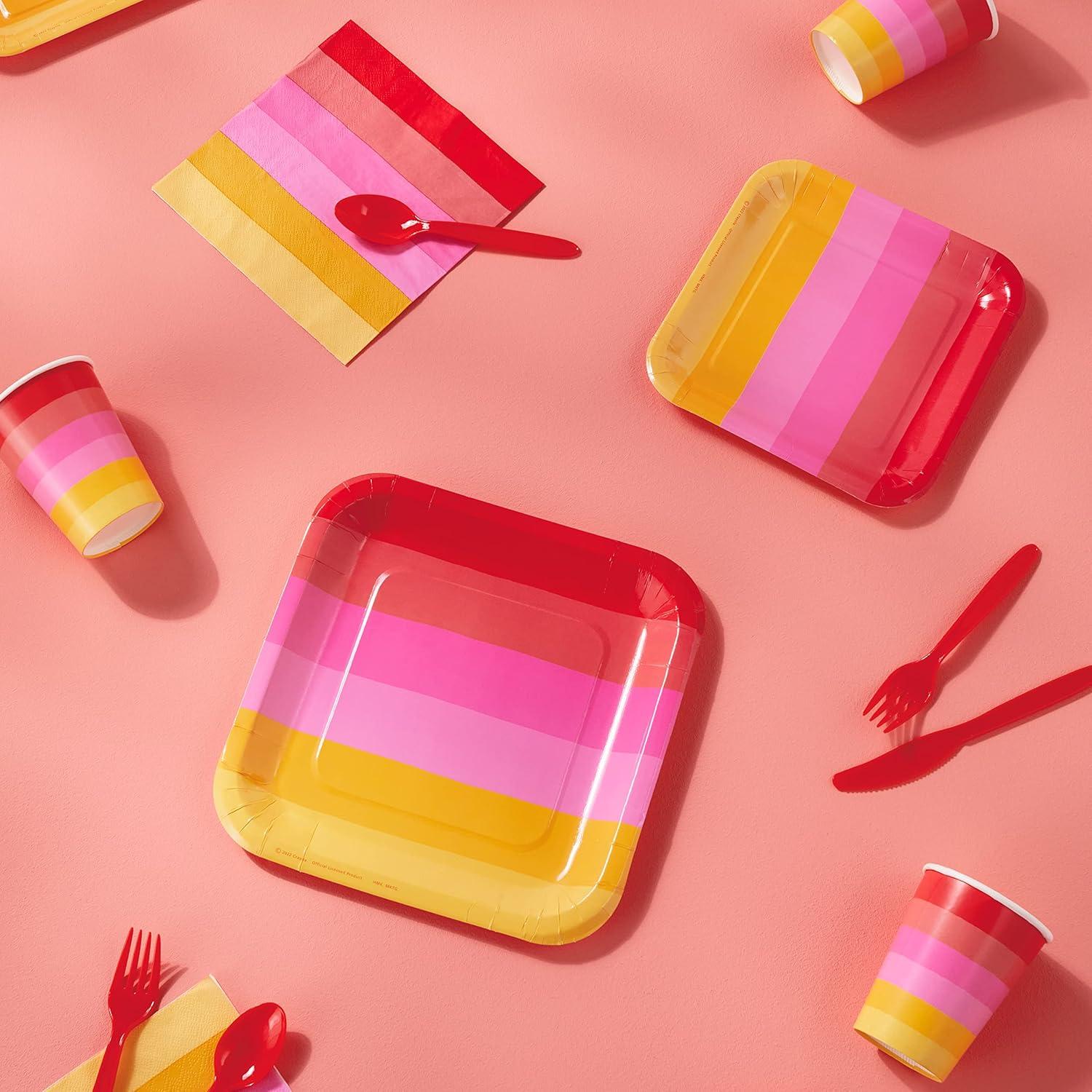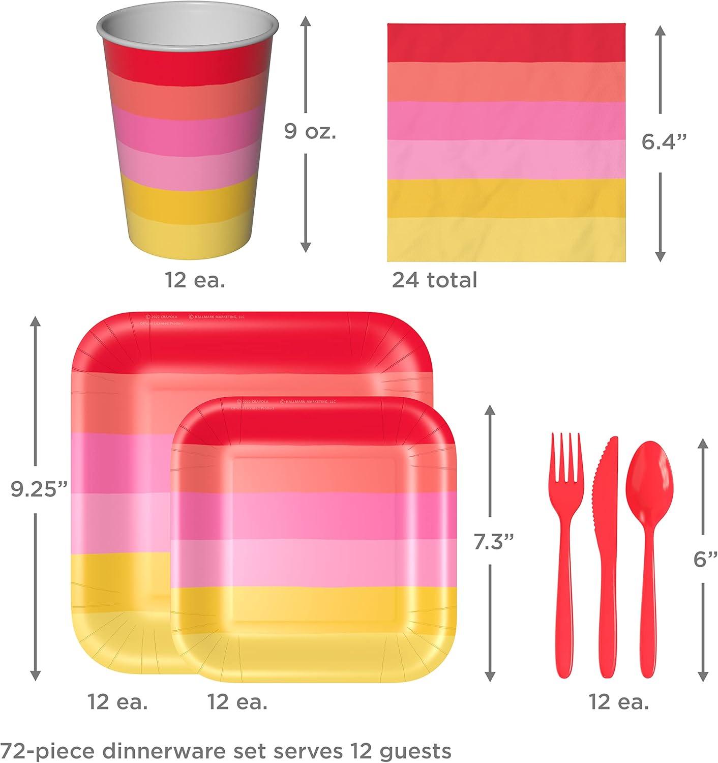 Crayola Color Pop Yellow and Orange Party Supplies (12 Dinner Plates, 12 Dessert Plates, 12 Paper Cups, 24 Napkins, 12 Sets of Plastic Cutlery) for Birthdays, Back to School, Halloween(Scarlet Red Tickle Me Pink Melon Golden Rod)