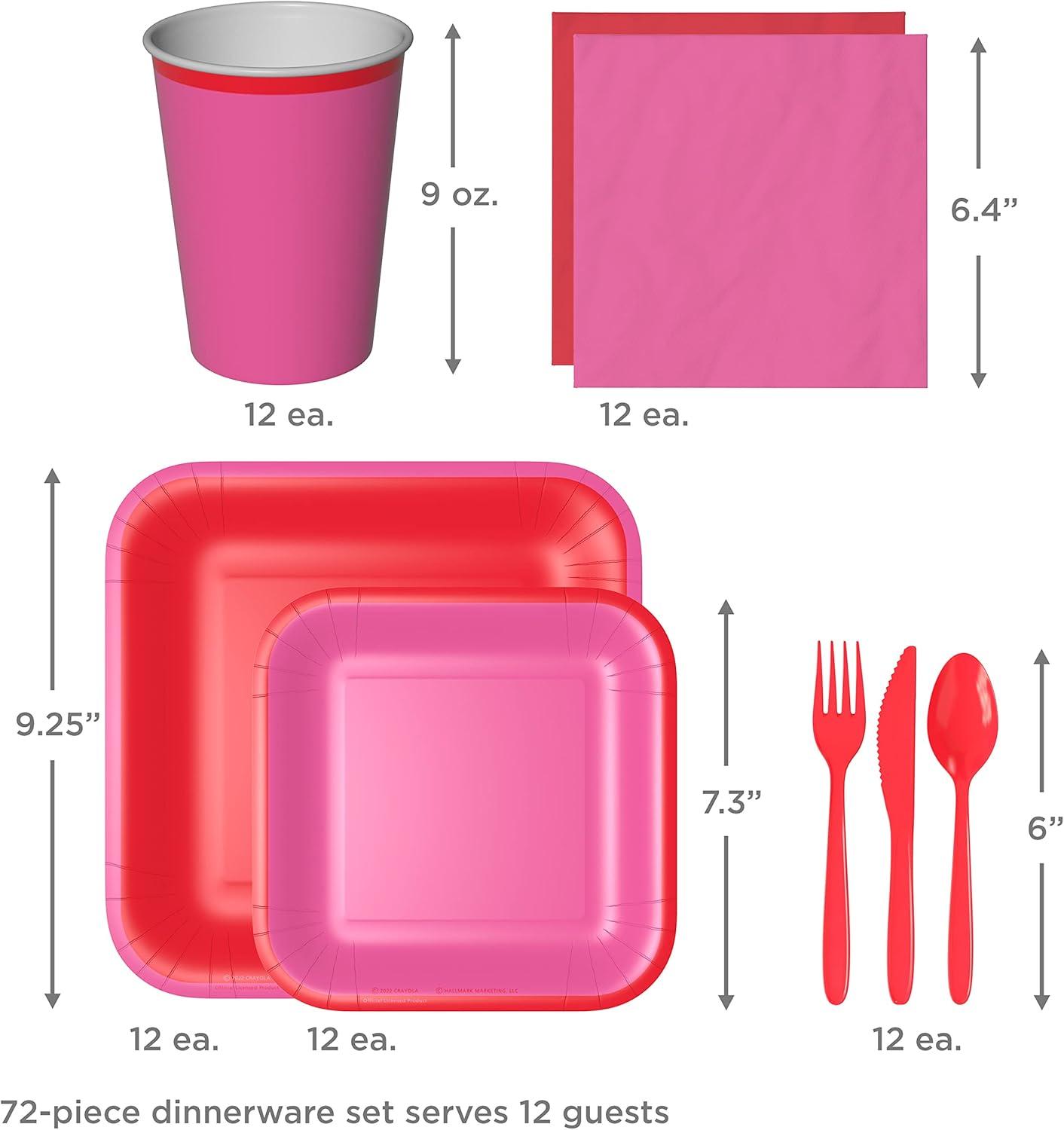 Crayola Color Pop Yellow and Orange Party Supplies (12 Dinner Plates, 12 Dessert Plates, 12 Paper Cups, 24 Napkins, 12 Sets of Plastic Cutlery) for Birthdays, Back to School, Halloween(Scarlet Red Tickle Me Pink)