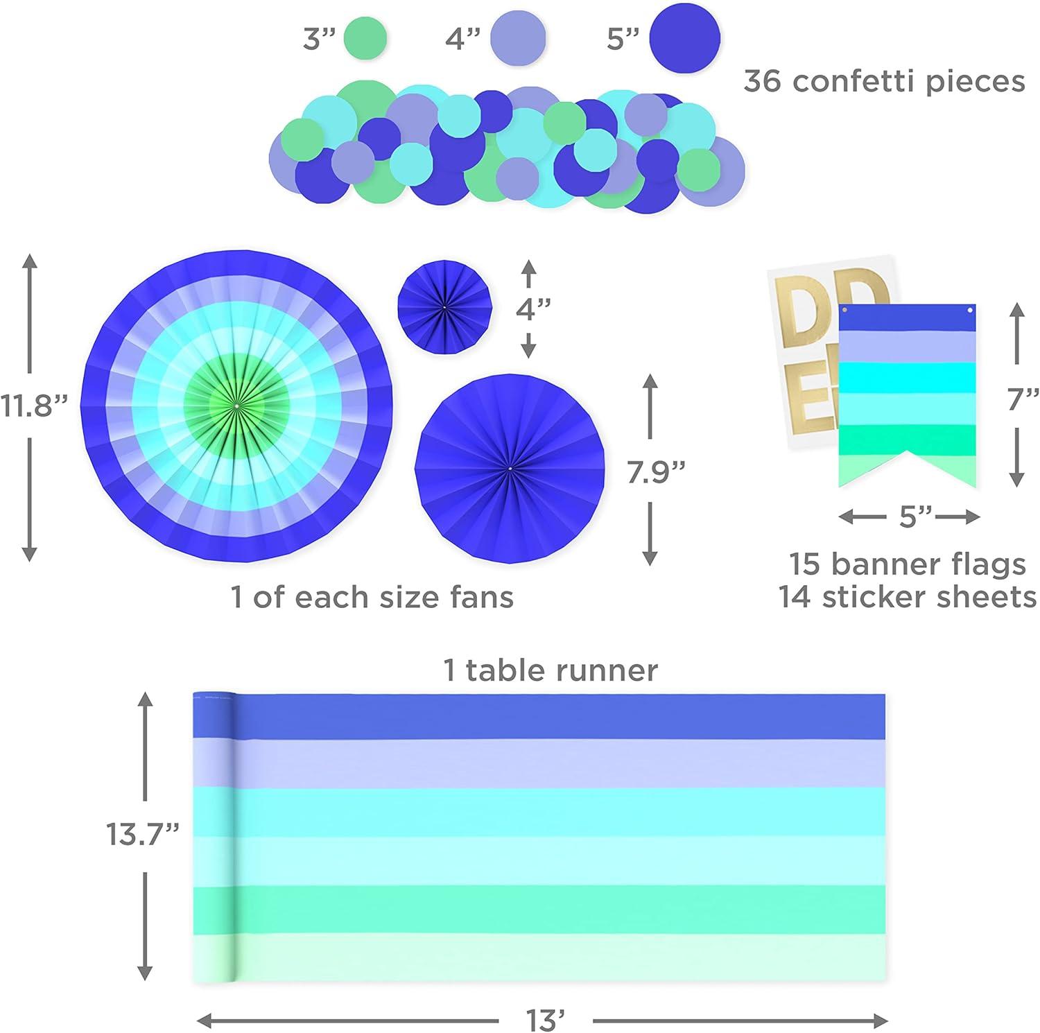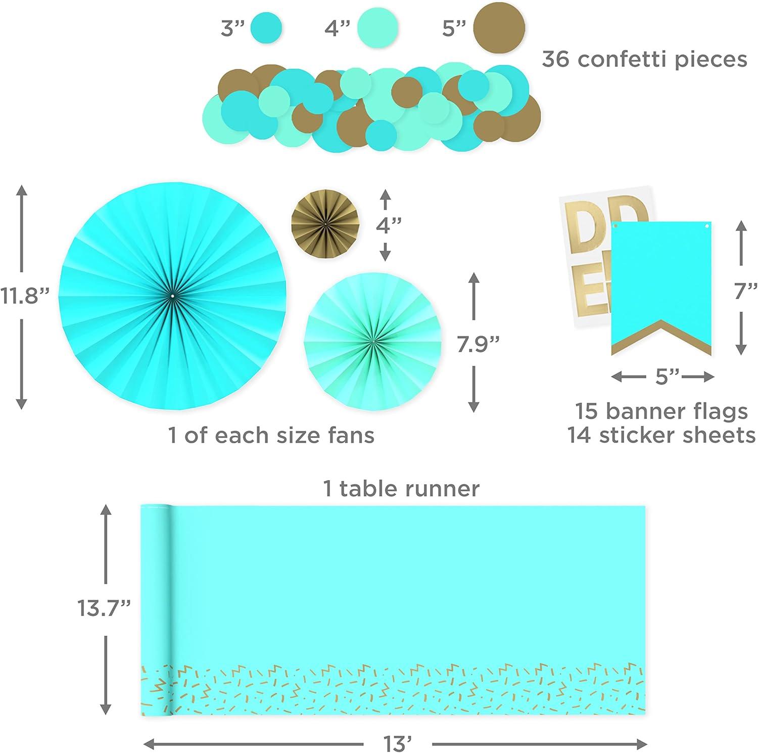 Hallmark Crayola Hallmark Color Pop Party Decorations Set – Aquamarine Blue and Gold (Customizable Banner, Reversible Table Runner, Paper Fan Flowers, Paper Dots) for Birthdays, Baby Showers, Holidays(Indigo Aquamarine Blue Sea Green)
