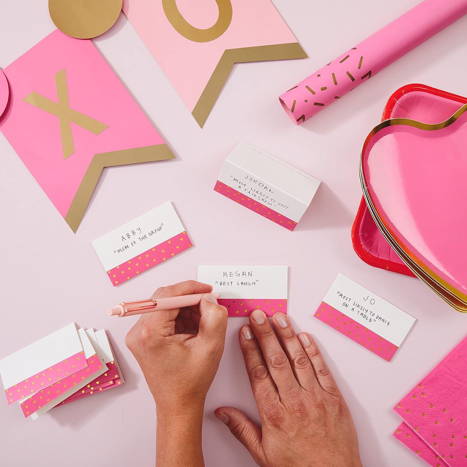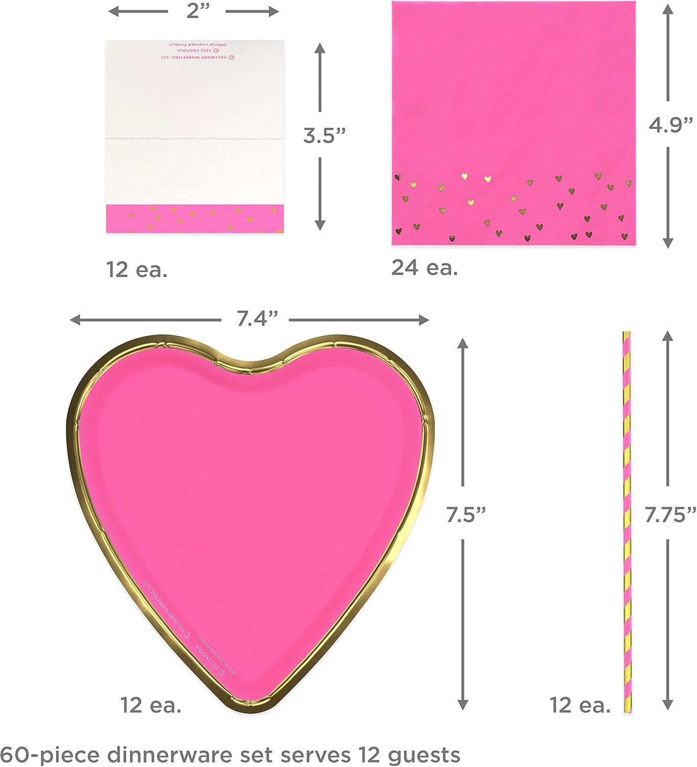 Hallmark Crayola Hallmark Color Pop Tickle Me Pink and Gold Heart Party Supplies (12 Paper Plates, 12 Paper Straws, 12 Place cards, 24 Napkins) for Birthdays, Bridal Showers, Valentine’s Day(Tickle Me Pink Metallic Gold Foil)