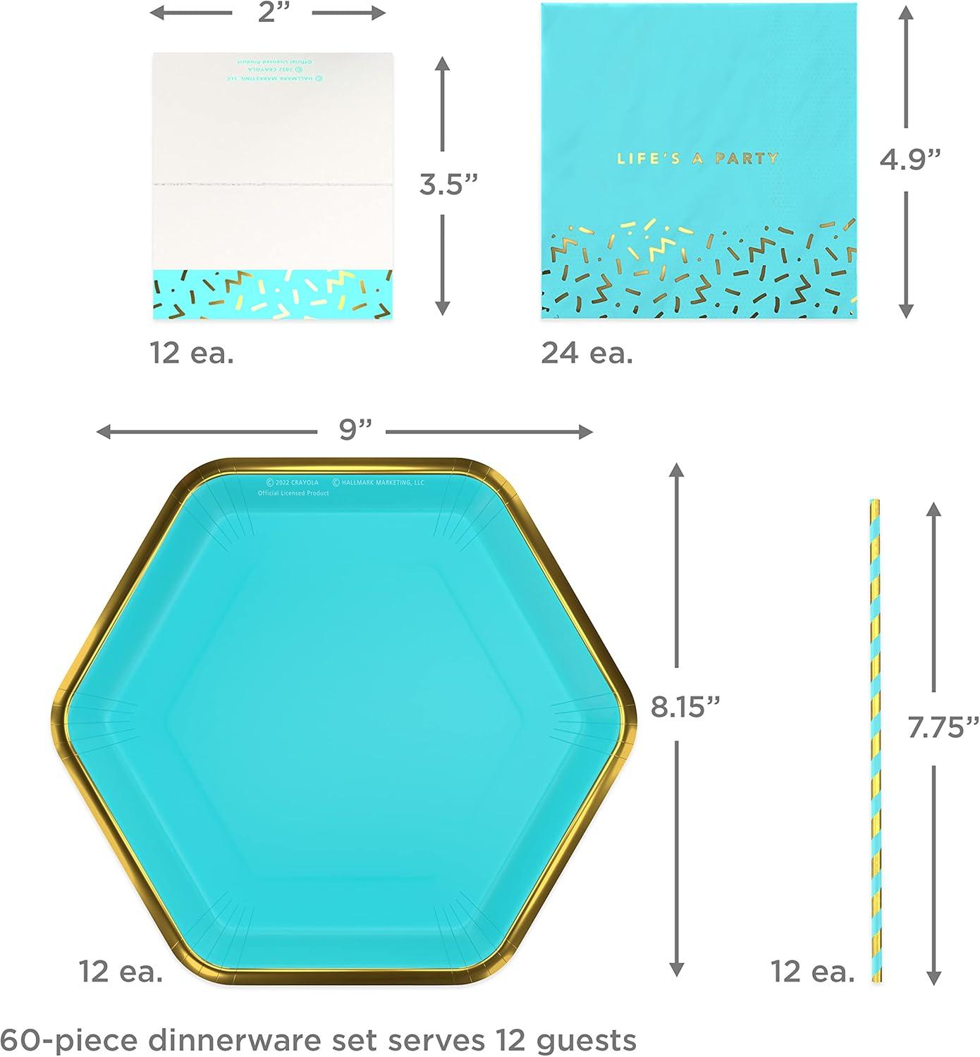 Hallmark Crayola Hallmark Color Pop Tickle Me Pink and Gold Heart Party Supplies (12 Paper Plates, 12 Paper Straws, 12 Place cards, 24 Napkins) for Birthdays, Bridal Showers, Valentine’s Day(Aquamarine Blue)