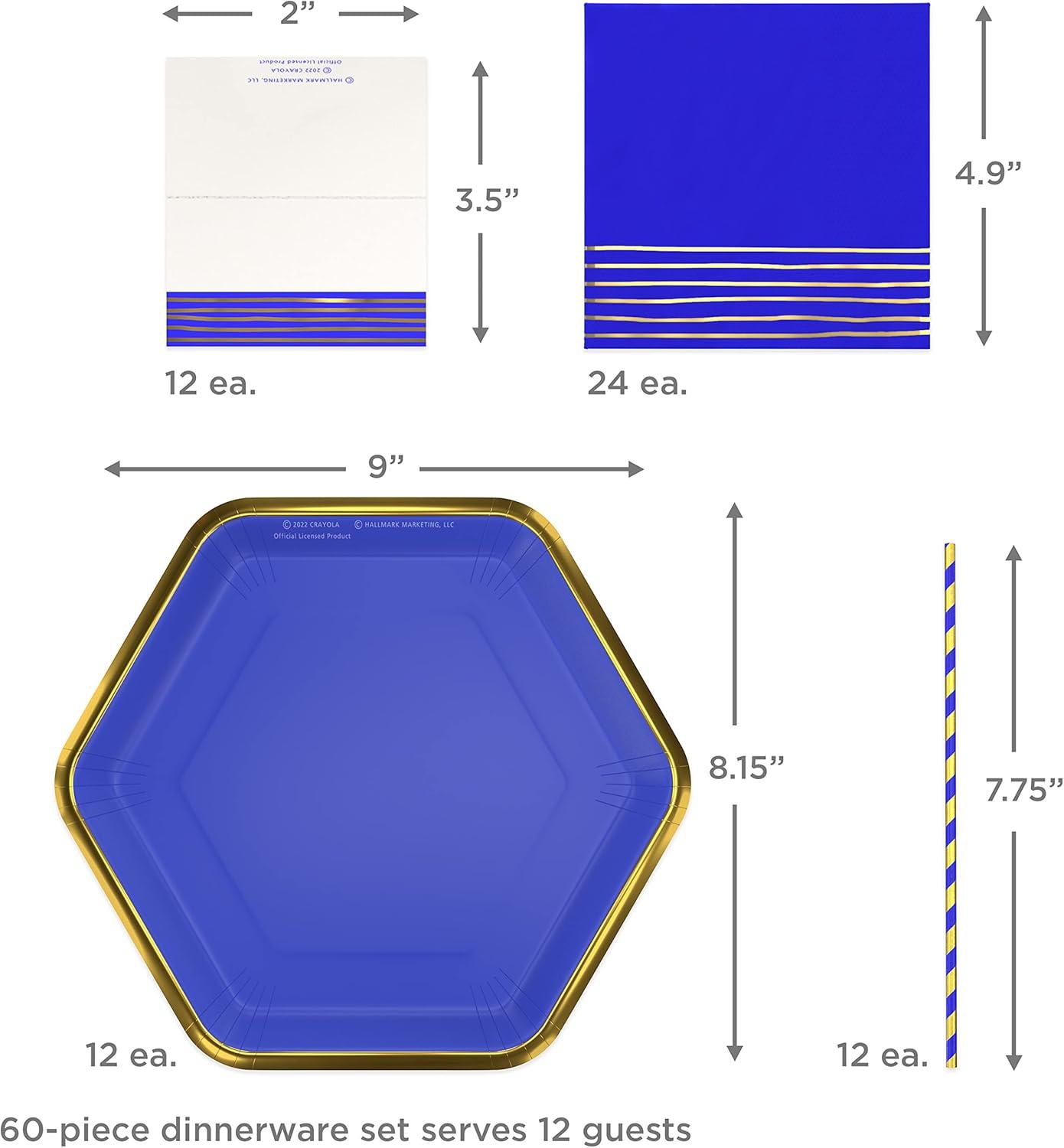 Hallmark Crayola Hallmark Color Pop Tickle Me Pink and Gold Heart Party Supplies (12 Paper Plates, 12 Paper Straws, 12 Place cards, 24 Napkins) for Birthdays, Bridal Showers, Valentine’s Day(Indigo Blue and Metallic Gold Foil)