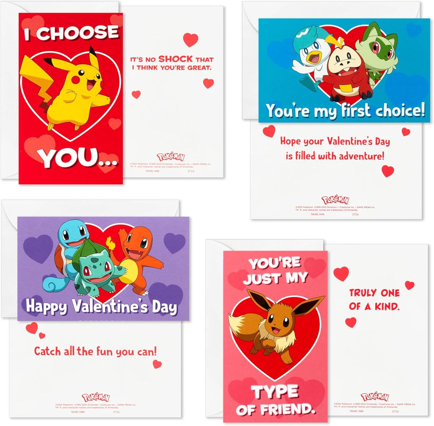 Hallmark Pokémon Valentines Day Cards for Kids School, Pikachu, Bulbasaur, Charmander, Squirtle (12 Blank Classroom Valentines with Envelopes)(Valentine’s Day Cards with Mailbox)