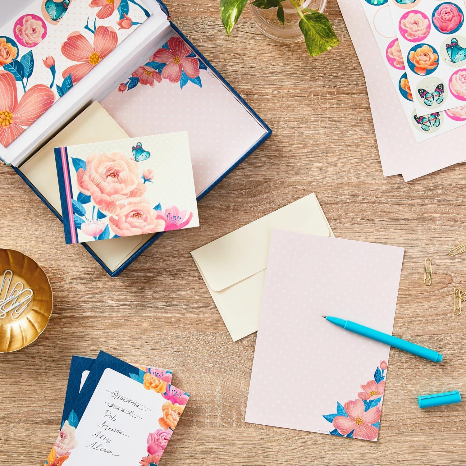 Hallmark Stationery Set with Desk Organizer, Floral (10 Blank Cards with Envelopes, 20 Writing Sheets with Envelopes, 75-Sheet Notepad, 30-Seals)