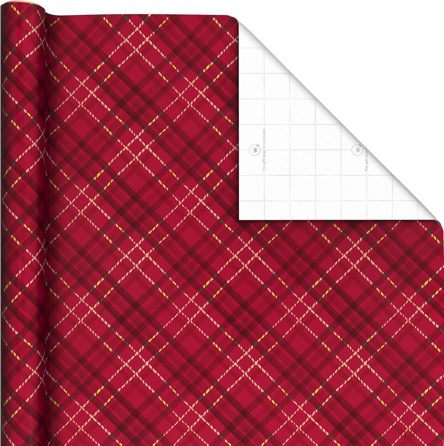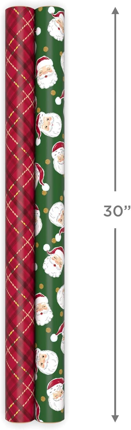 Hallmark Christmas Wrapping Paper Rolls – Solid Red, Green, Gold Metallic Foil Gift Wrap Paper (Set of 3 Rolls: 60 sq. ft. ttl.) for Holiday Parties, Hanukkah, Winter Weddings(Santa Red Plaid)