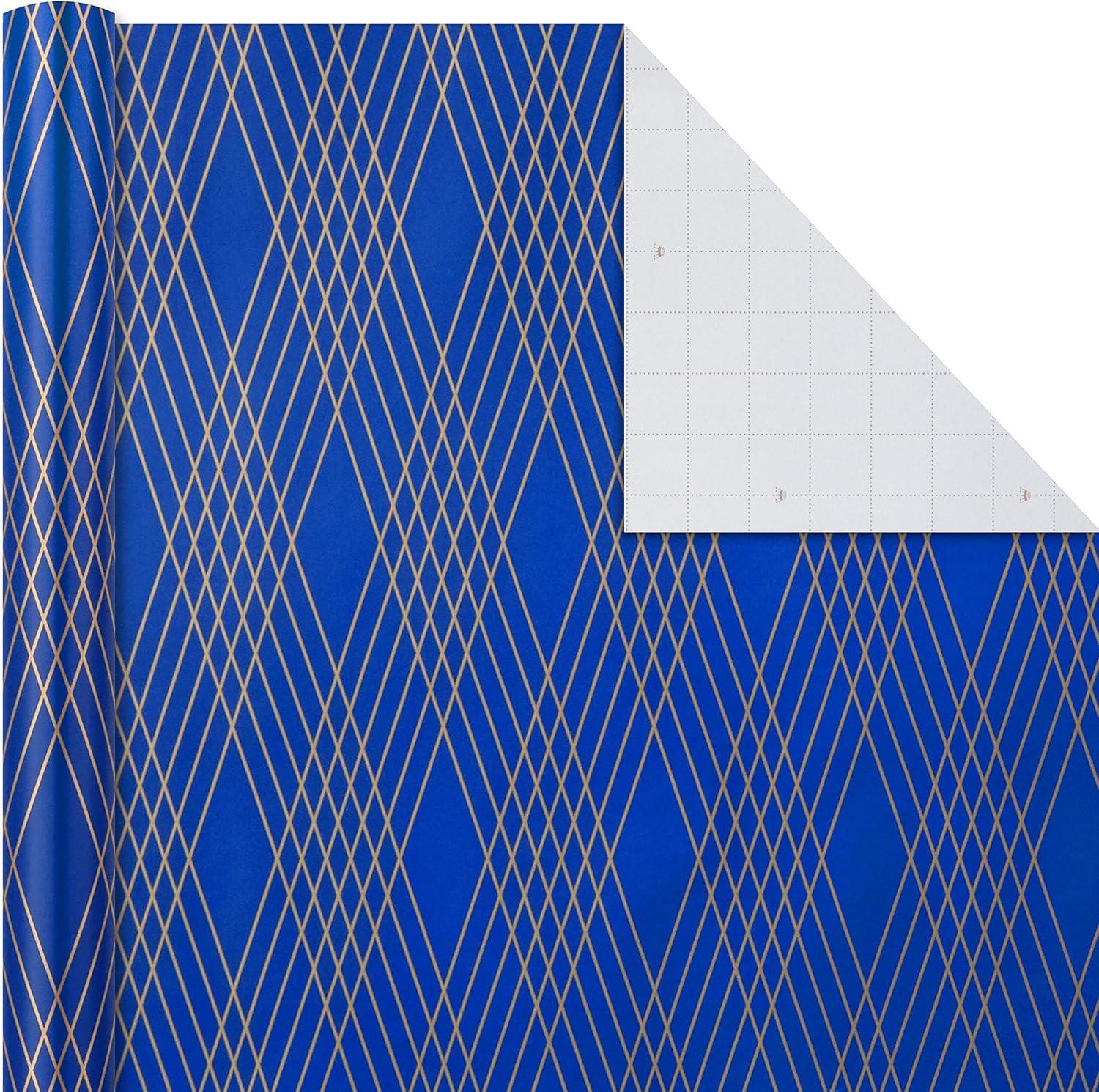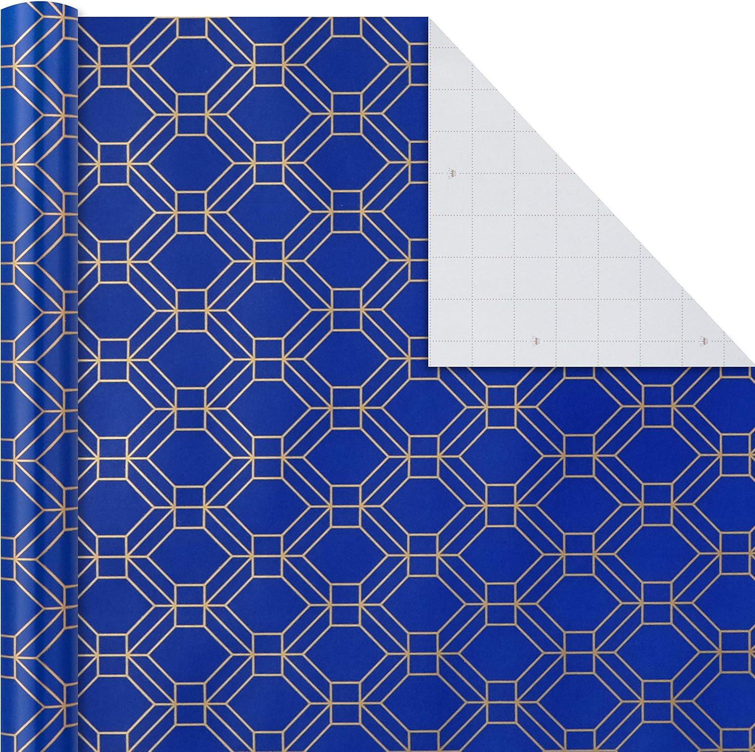 Hallmark Christmas Wrapping Paper Rolls, Metallic Foil Holiday Gift Wrap (Pack of 3: 60 sq. ft. ttl) Elegant Navy Blue and Gold for Christmas, Hanukkah, Weddings, Graduations(Navy Blush Mint)