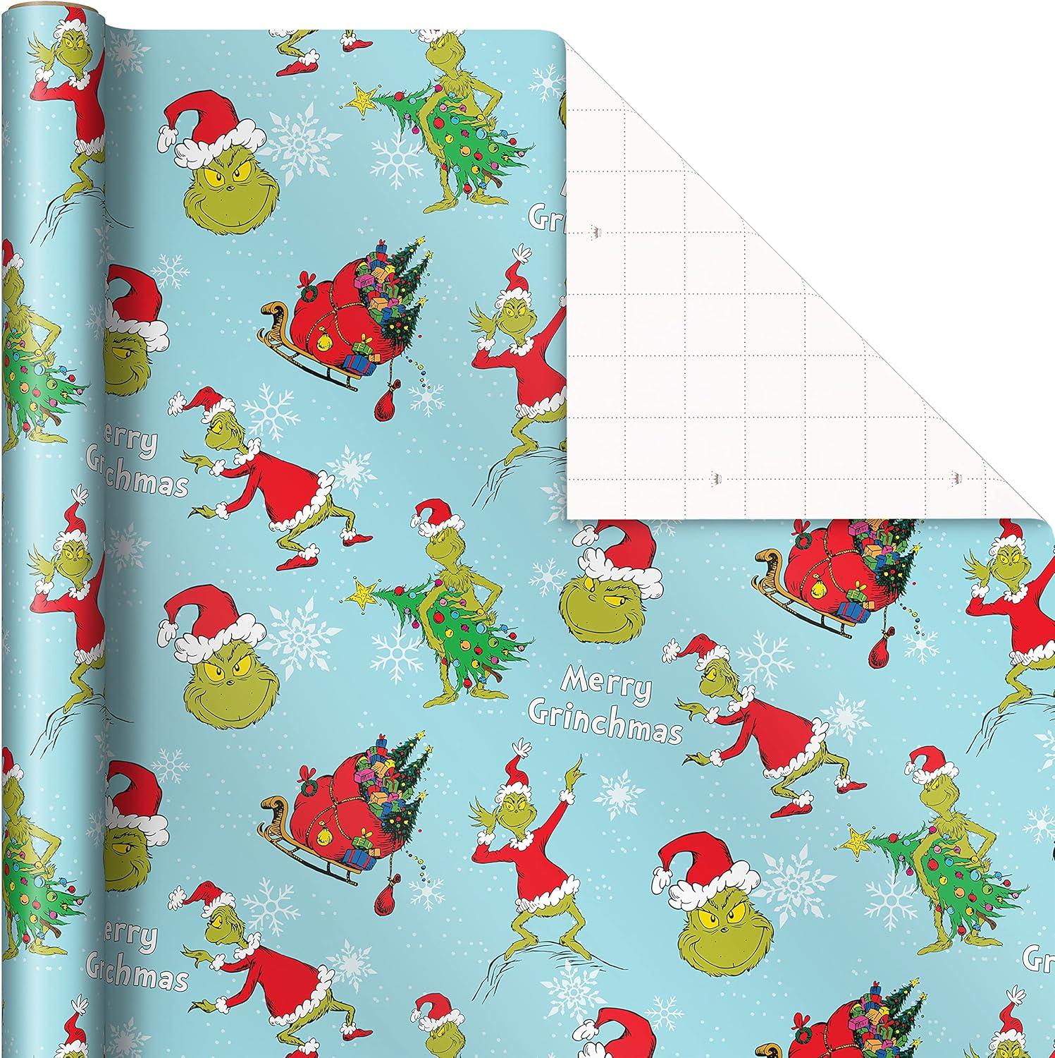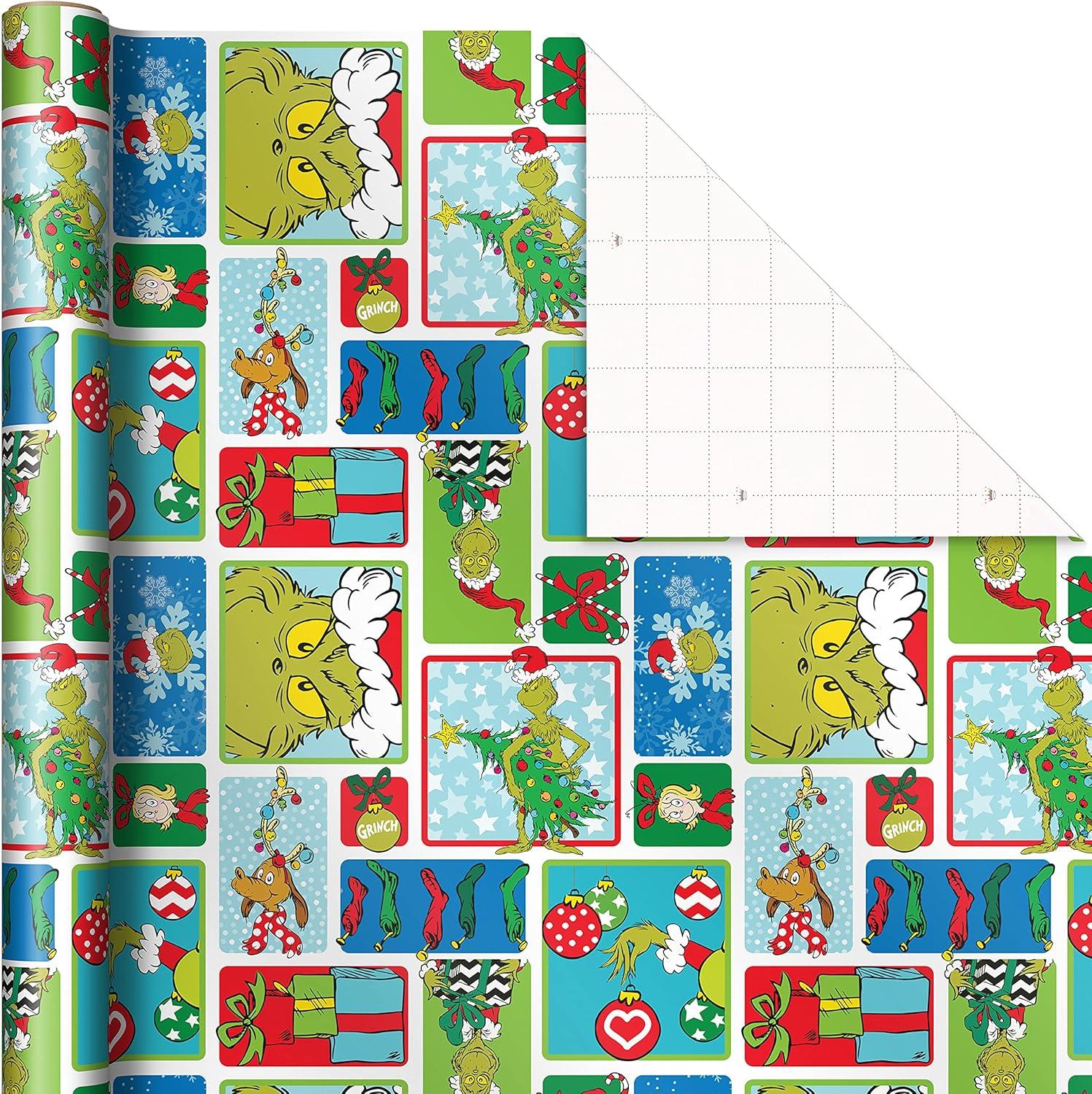 Hallmark Dr. Seuss Grinch Wrapping Paper for Kids (3 Rolls: 105 Sq. Ft. Ttl) for Christmas with Blue Tiles, White Snowflakes, Cindy Lou Who, Max(Wrapping Paper)