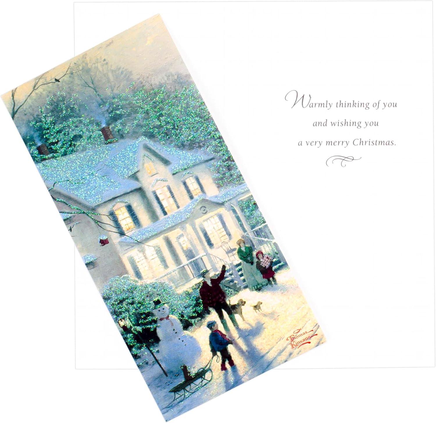 Hallmark Bulk Classic Holiday Boxed Cards (40 Cards and 40 Envelopes) Snowy Red and White Home with Glitter(Thomas Kinkade)