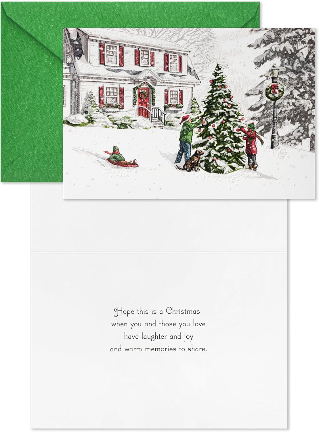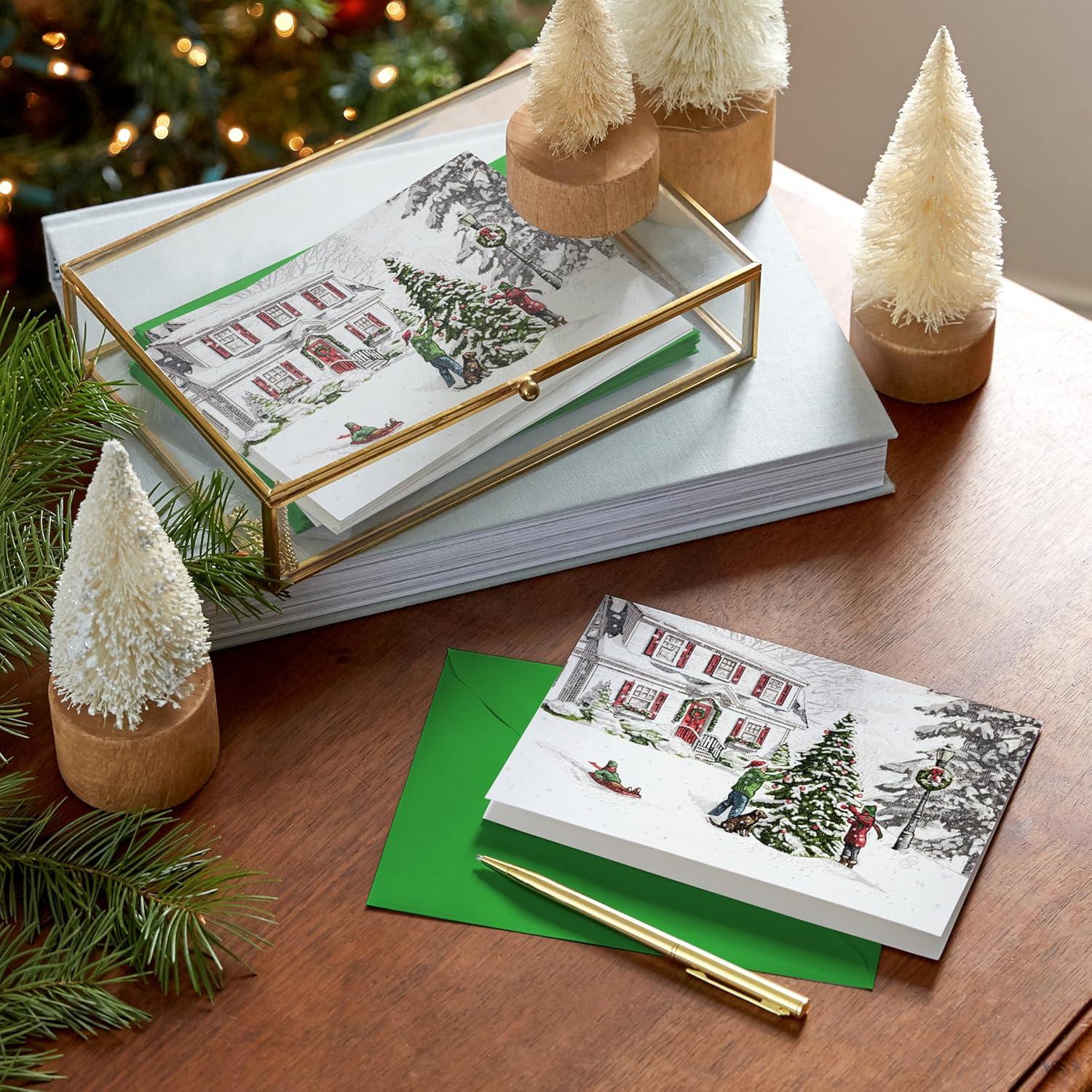 Hallmark Bulk Classic Holiday Boxed Cards (40 Cards and 40 Envelopes) Snowy Red and White Home with Glitter(Warm Memories)