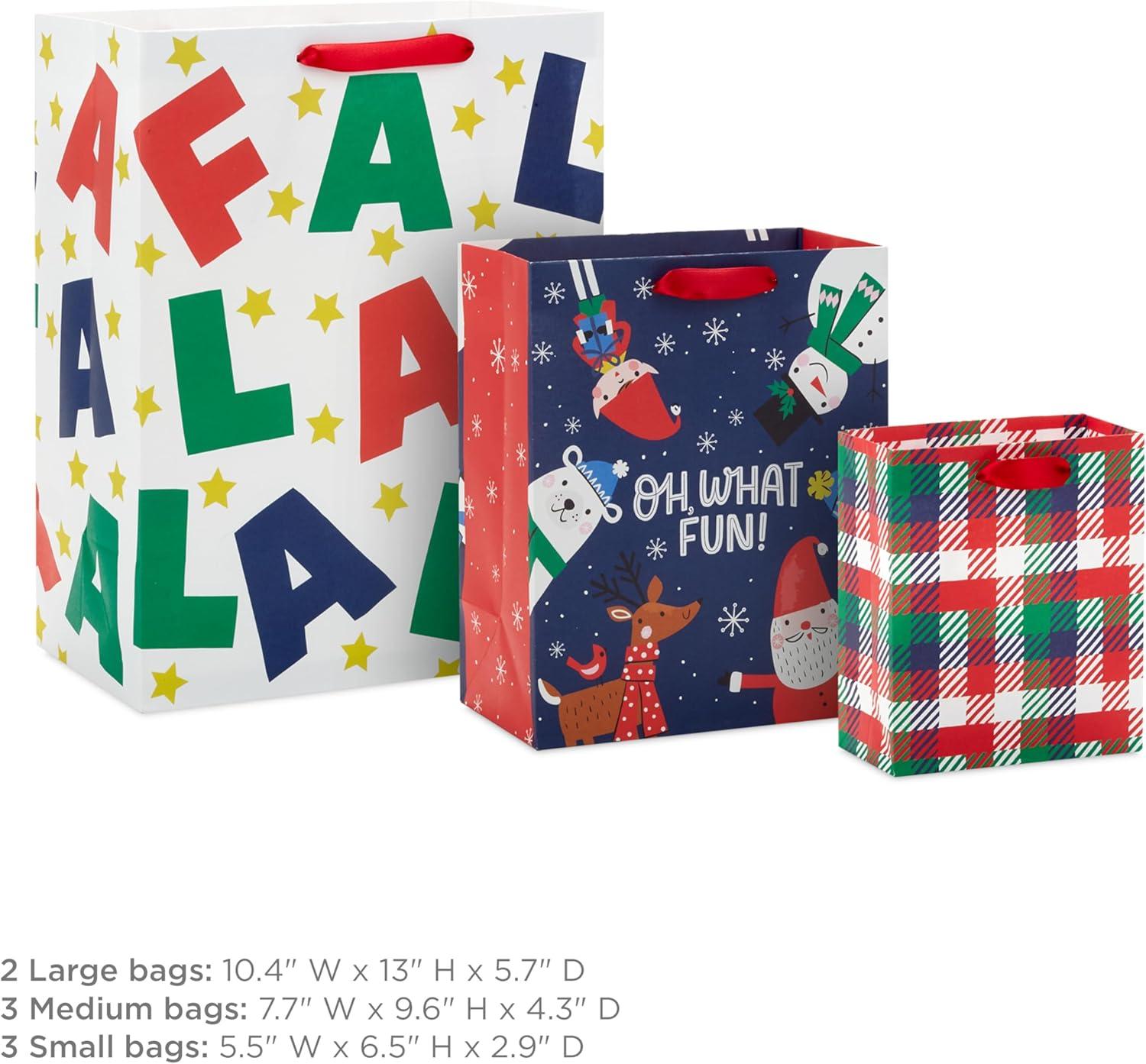 Hallmark Christmas Gift Bags Assorted Sizes (8 Bags: 2 Small 5″, 2 Medium 8″, 2 Large 11″, 2 Extra Large 14″) Penguins, Hedgehogs, Santa Claus, Snowmen, Trees(Fa la la Oh What Fun Christmas Plaid)