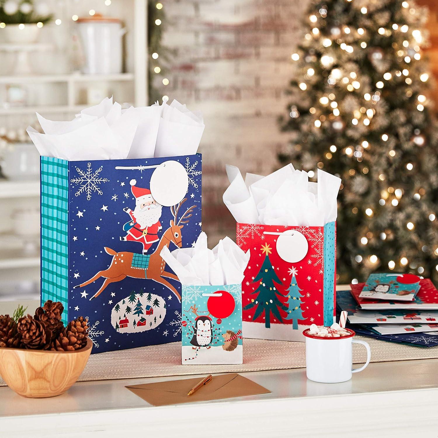 Hallmark Christmas Gift Bags Assorted Sizes (8 Bags: 2 Small 5″, 2 Medium 8″, 2 Large 11″, 2 Extra Large 14″) Penguins, Hedgehogs, Santa Claus, Snowmen, Trees(Penguins Santa Claus Snowmen Christmas Trees)