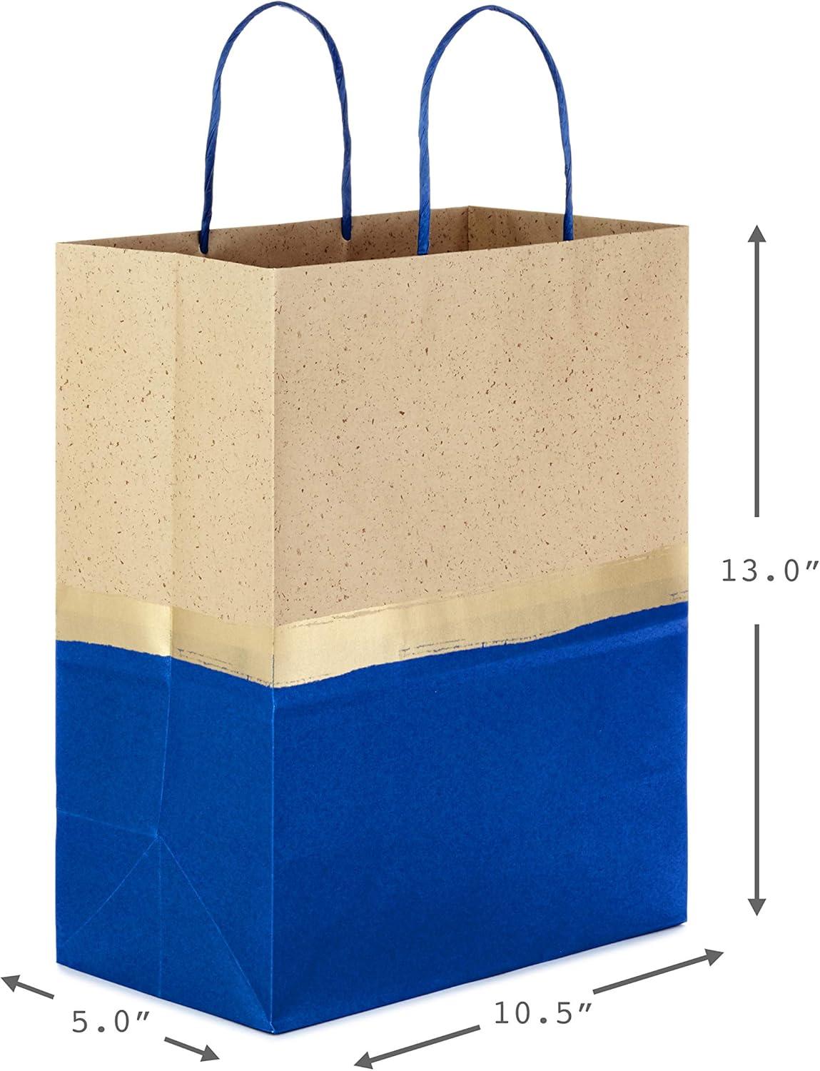 Hallmark 13″ Large Paper Gift Bags (Pack of 6 – Blue & Kraft) for Hanukkah, Birthdays, Weddings, Graduations, Father’s Day, Baby Showers, Bridal Showers(Blue)