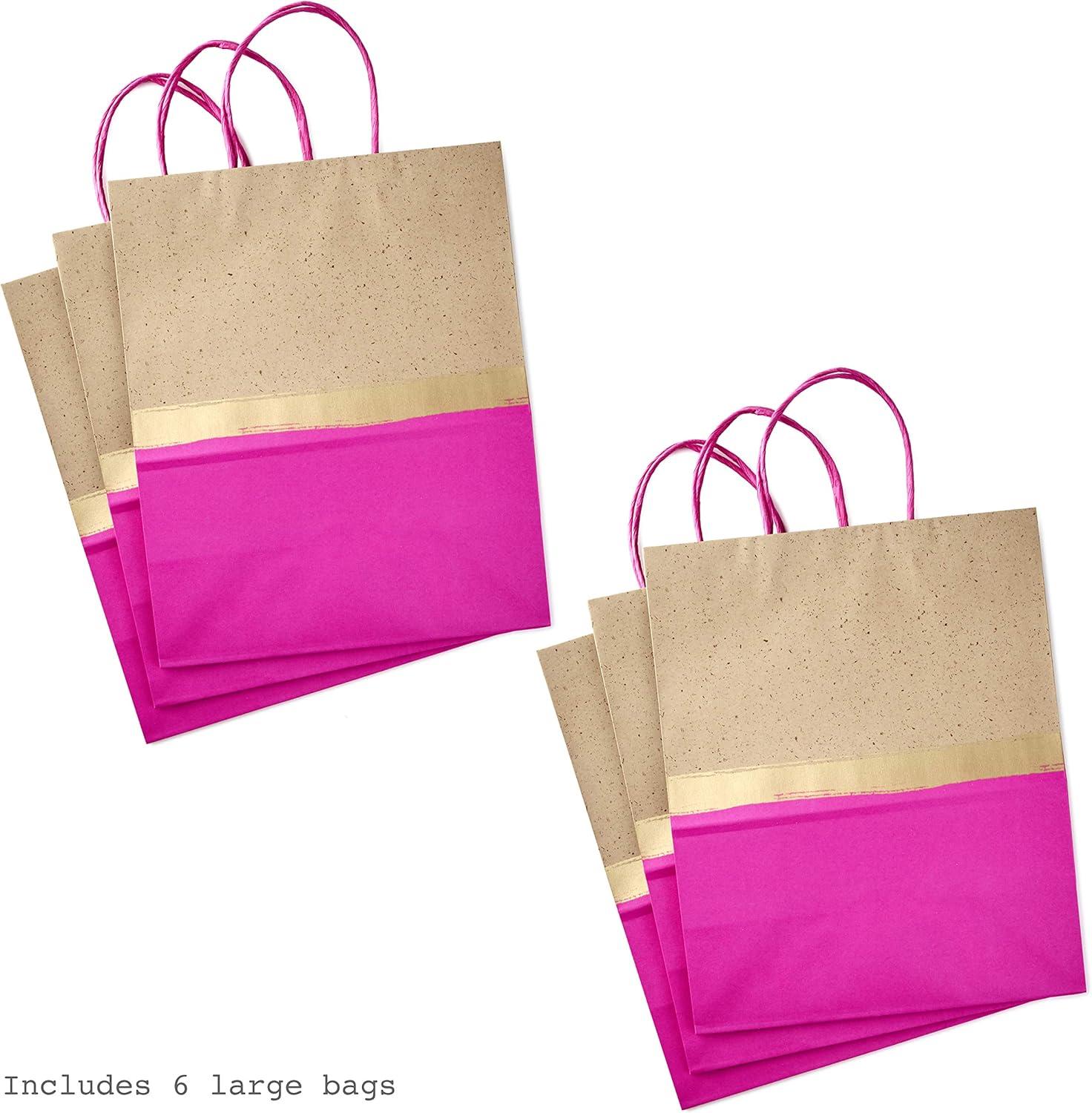 Hallmark 13″ Large Paper Gift Bags (Pack of 6 – Blue & Kraft) for Hanukkah, Birthdays, Weddings, Graduations, Father’s Day, Baby Showers, Bridal Showers(Pink)
