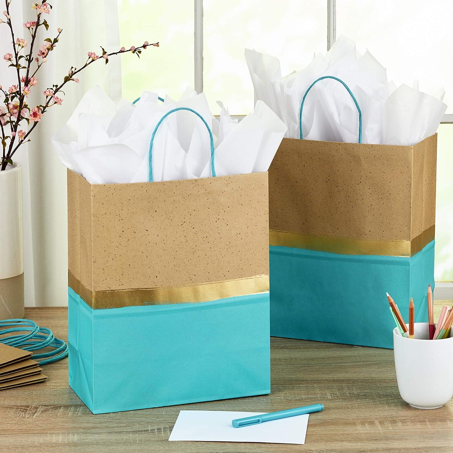 Hallmark 13″ Large Paper Gift Bags (Pack of 6 – Blue & Kraft) for Hanukkah, Birthdays, Weddings, Graduations, Father’s Day, Baby Showers, Bridal Showers(Turquoise)