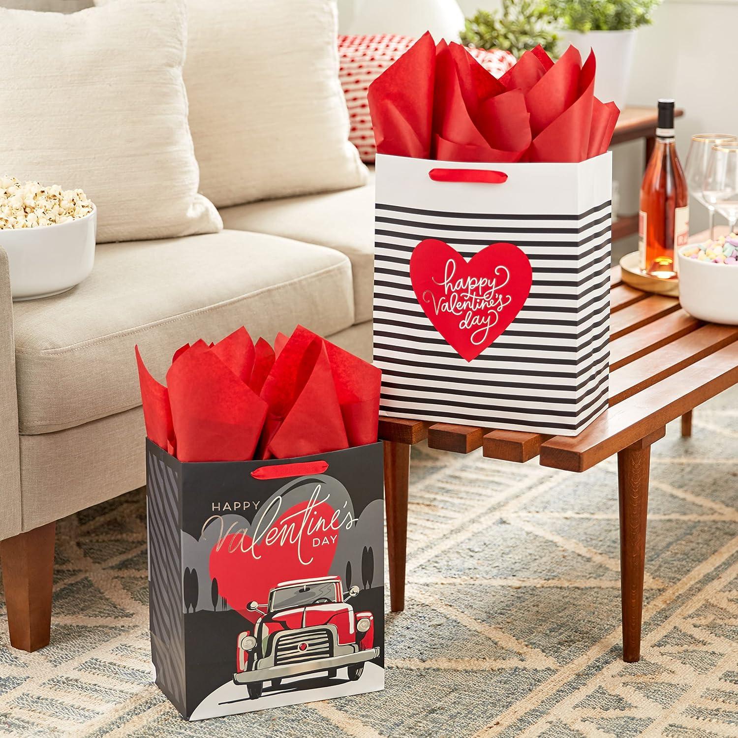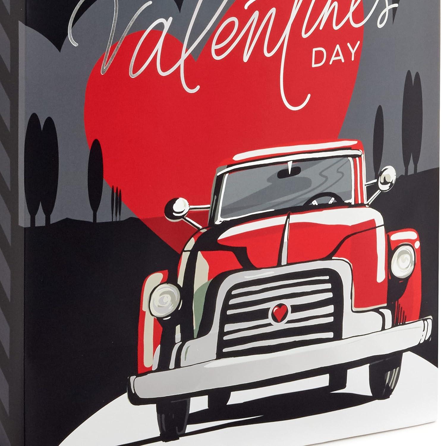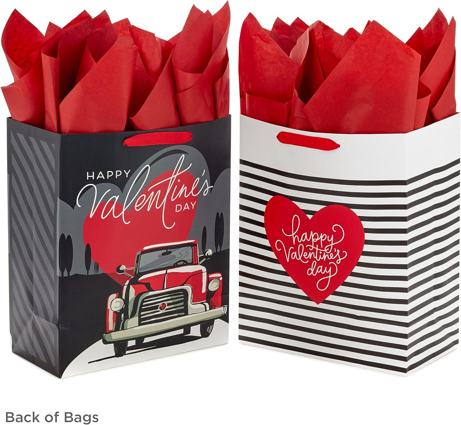 Hallmark 13″ Large Valentine’s Day Gift Bags with Tissue Paper (2 Bags: Vintage Red Truck, Black and White Stripes) for Adults, Spouse, Husband, Boyfriend