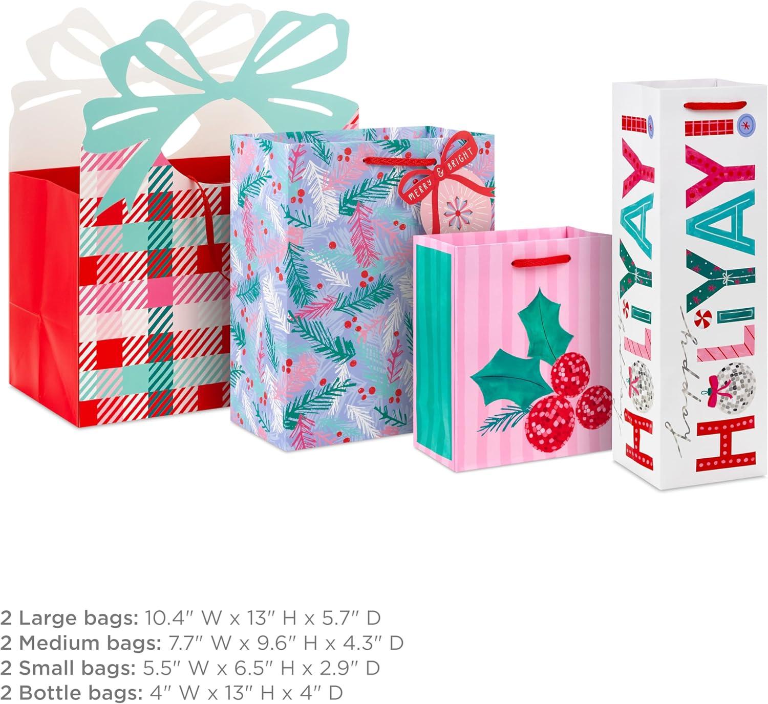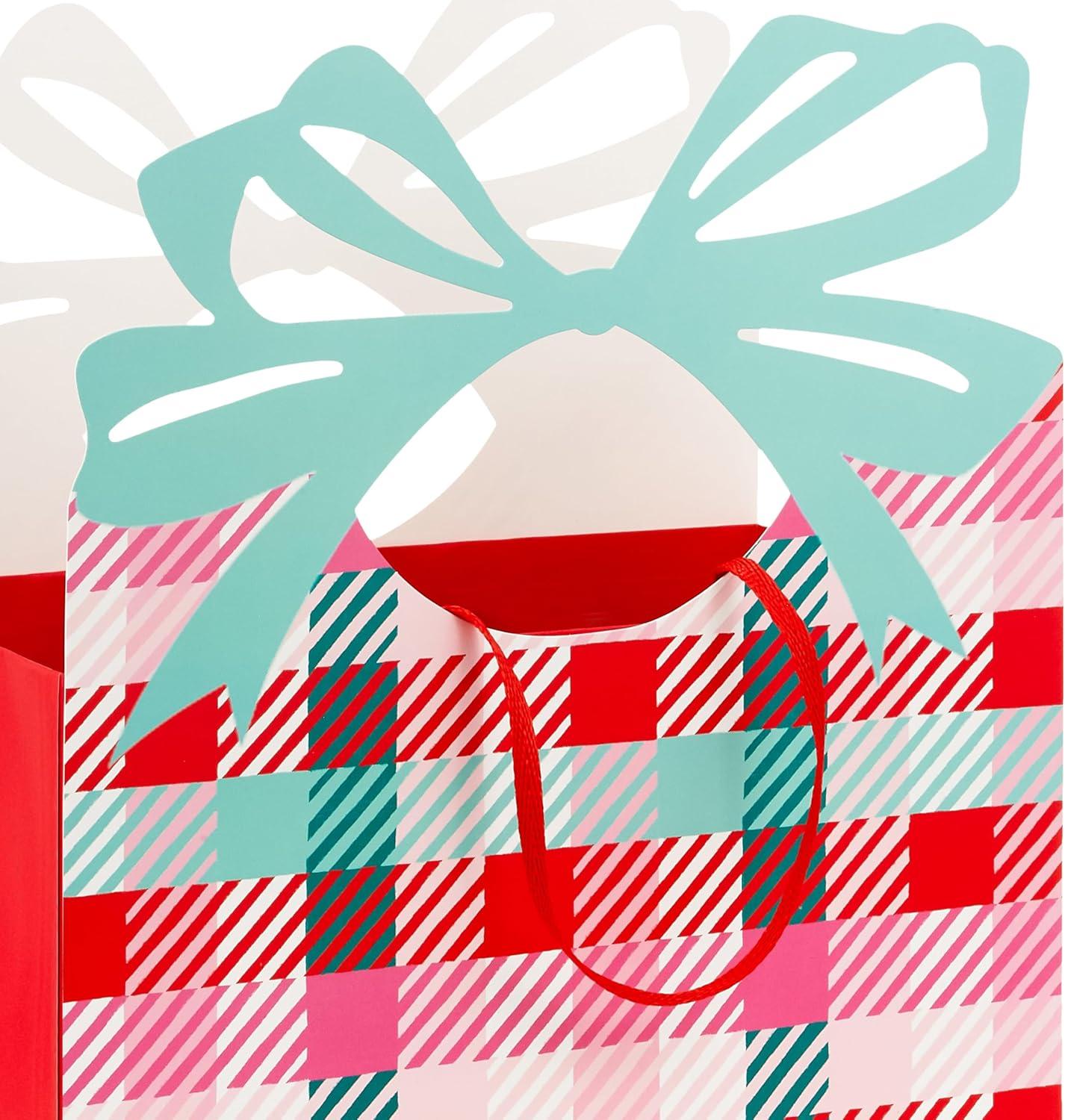 Hallmark 11″ Large Pink Gift Bags (Pack of 3 Bags, Stripes) for Birthdays, Mother’s Day, Valentine’s Day, Baby Showers, Bridal Showers, Bridesmaids Gifts, Bachelorette Parties(Plaid Disco Holly Happy HoliYay)