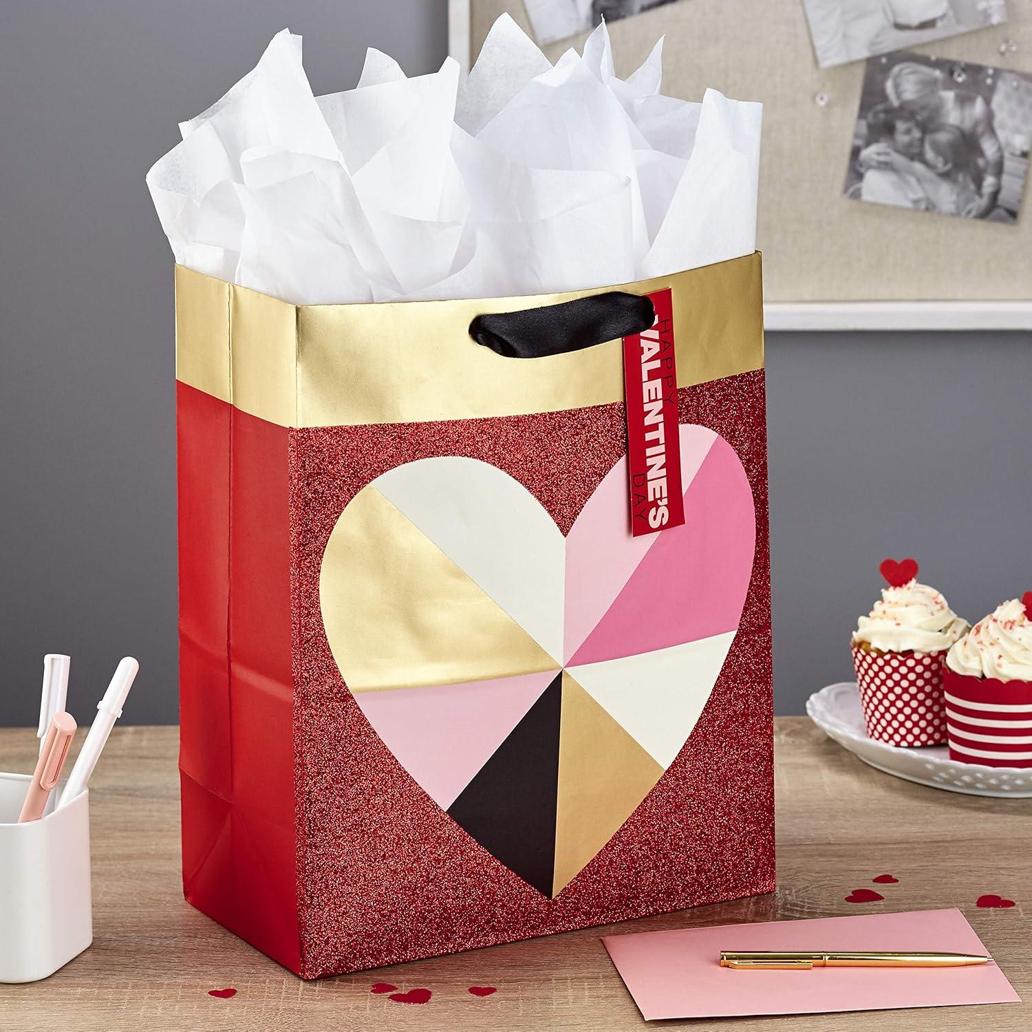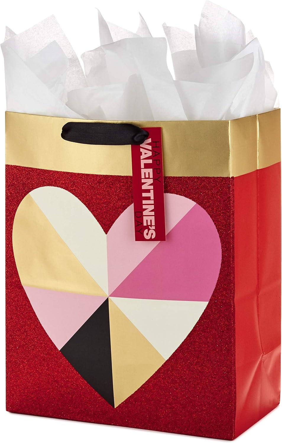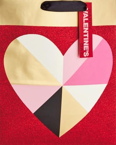 Hallmark 13″ Large Valentine’s Day Gift Bag with Tissue Paper (Geometric Heart)(Geometric Heart)