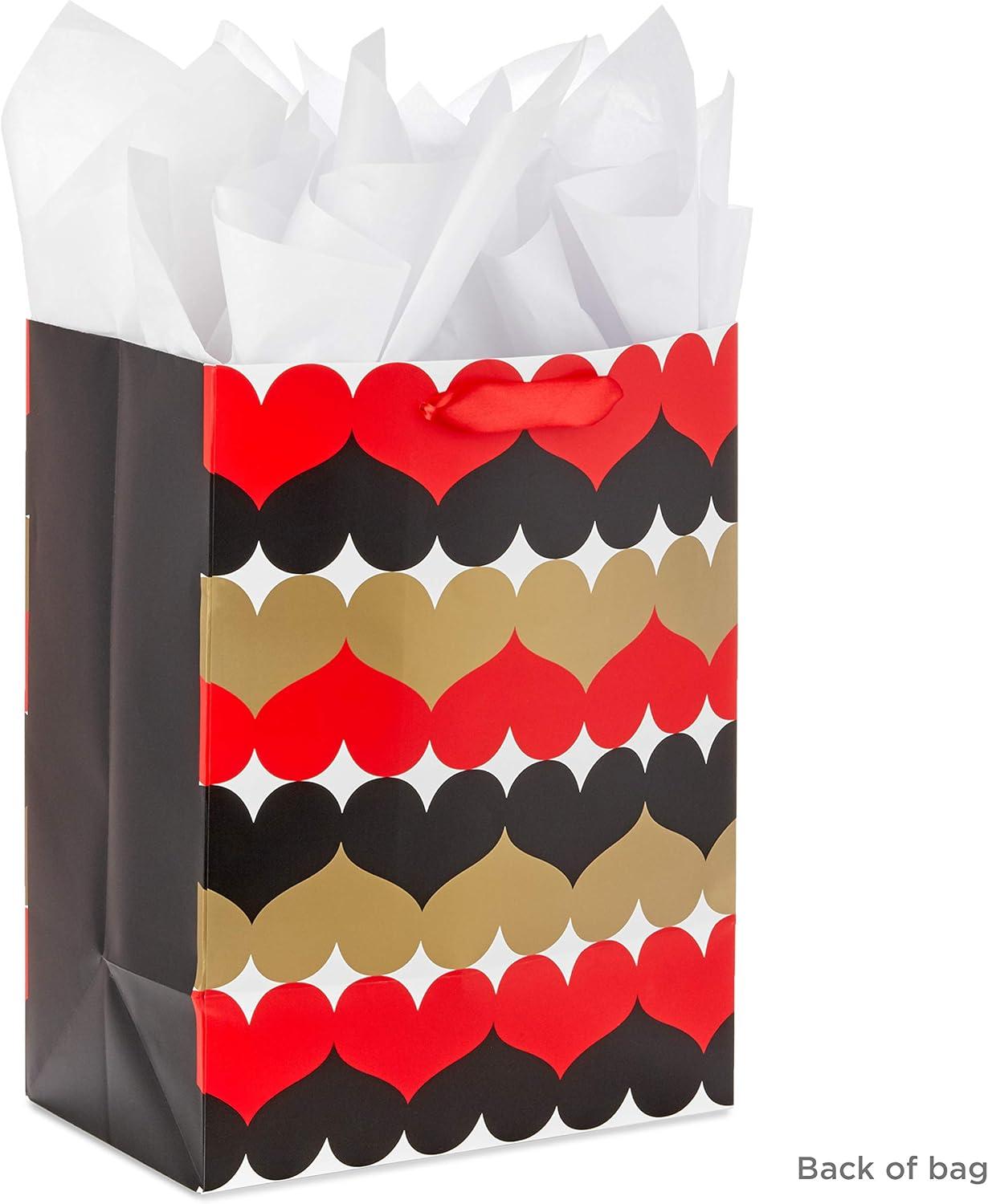 Hallmark 13″ Large Valentine’s Day Gift Bag with Tissue Paper (Geometric Heart)(Red Black and Gold Hearts)