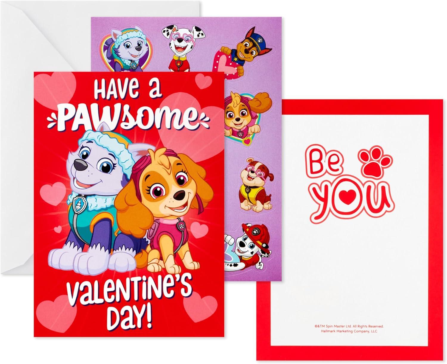 Hallmark Paw Patrol Valentines Day Cards and Stickers for Kids School (24 Classroom Valentines with Envelopes)(Paw Patrol Valentines with Stickers)