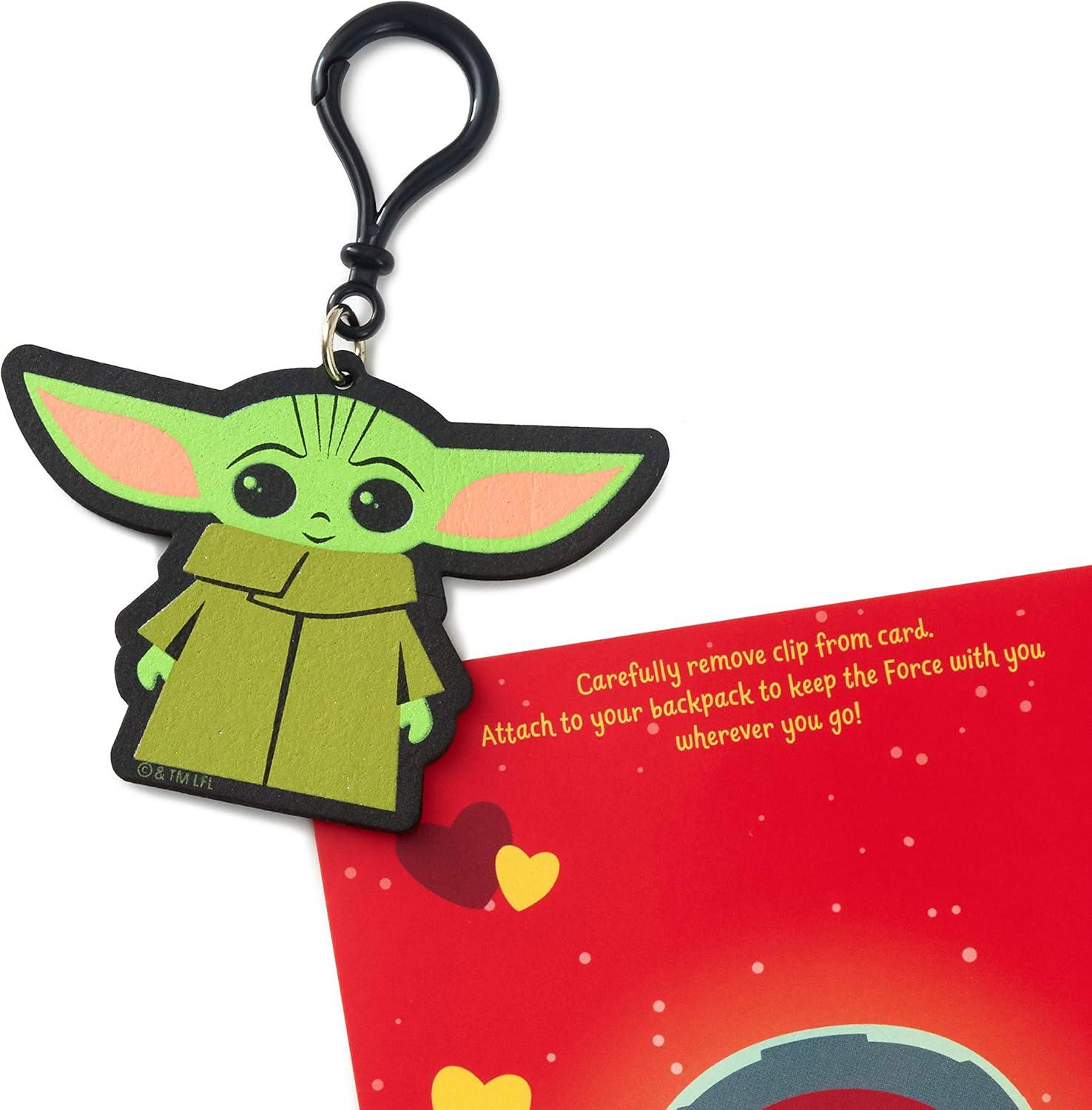 Hallmark Star Wars Valentines Day Card for Kid with Removable Backpack Clip (Baby Yoda), May the 4th(Day Card)