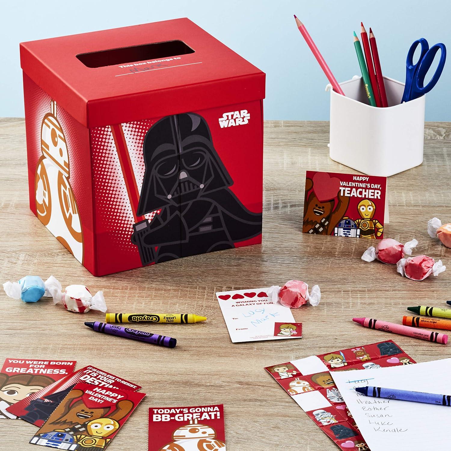 Hallmark Star Wars Valentines Day Cards and Mailbox for Kids School Classroom Exchange (1 Box, 32 Valentine Cards, 35 Stickers, 1 Teacher Card)