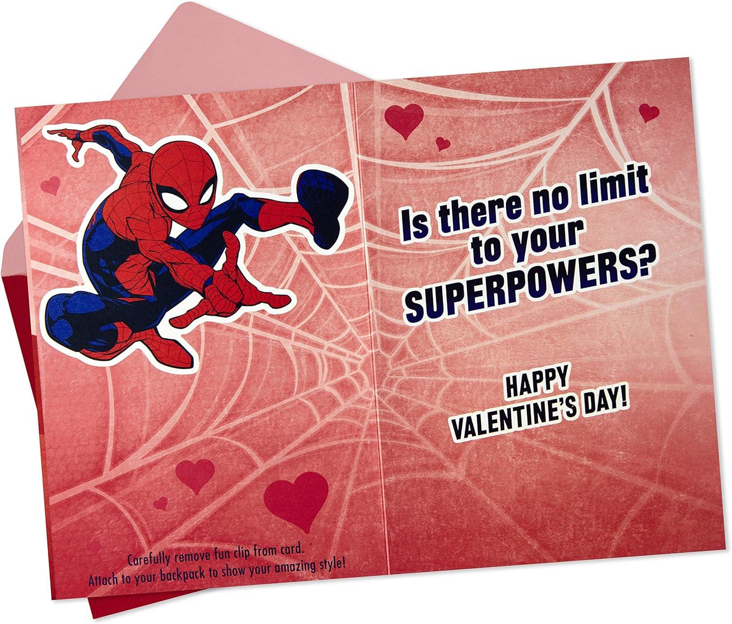 Hallmark Spider-Man Valentines Day Card for Kids with Backpack Clip (Smart, Talented, Fun, Amazing)