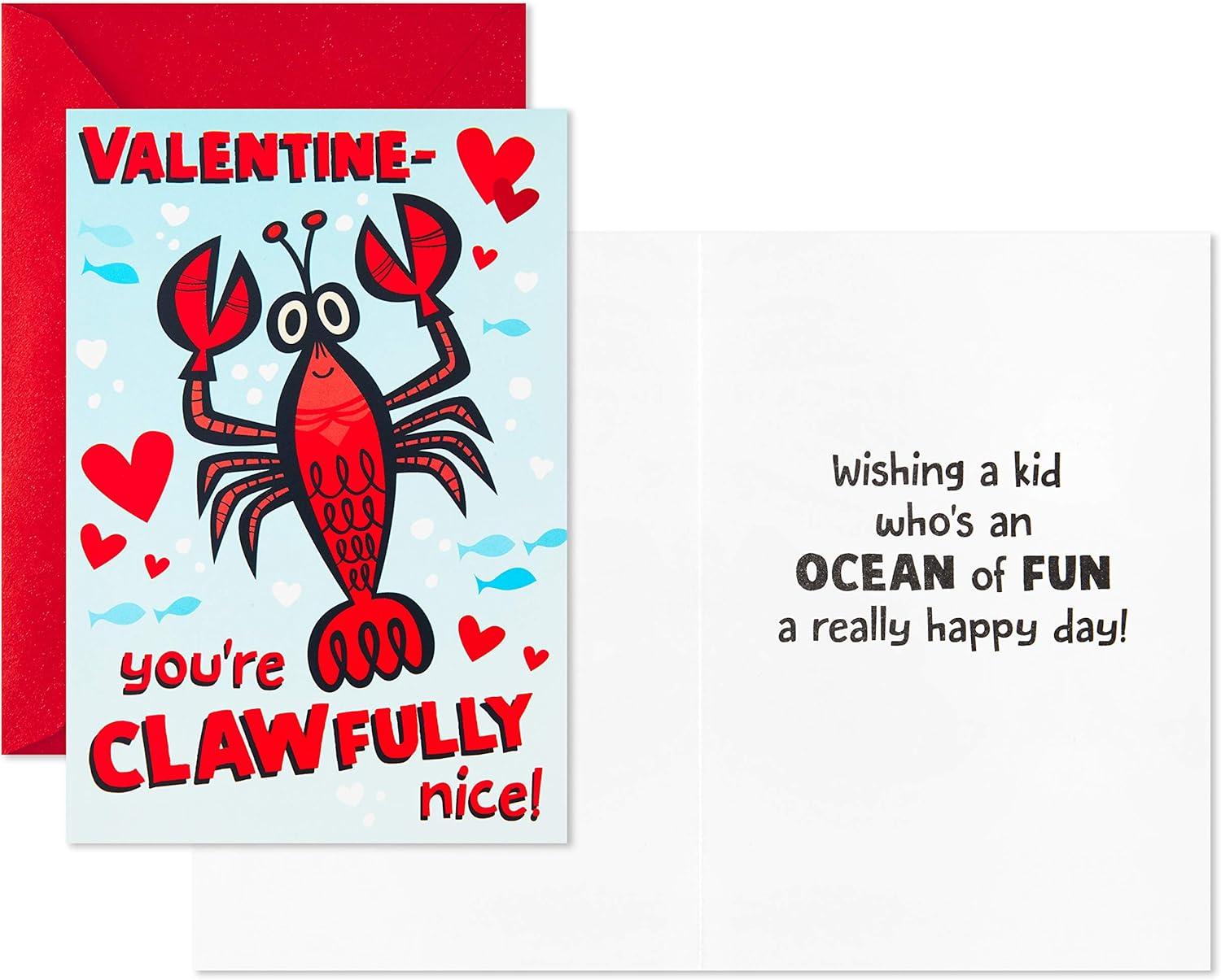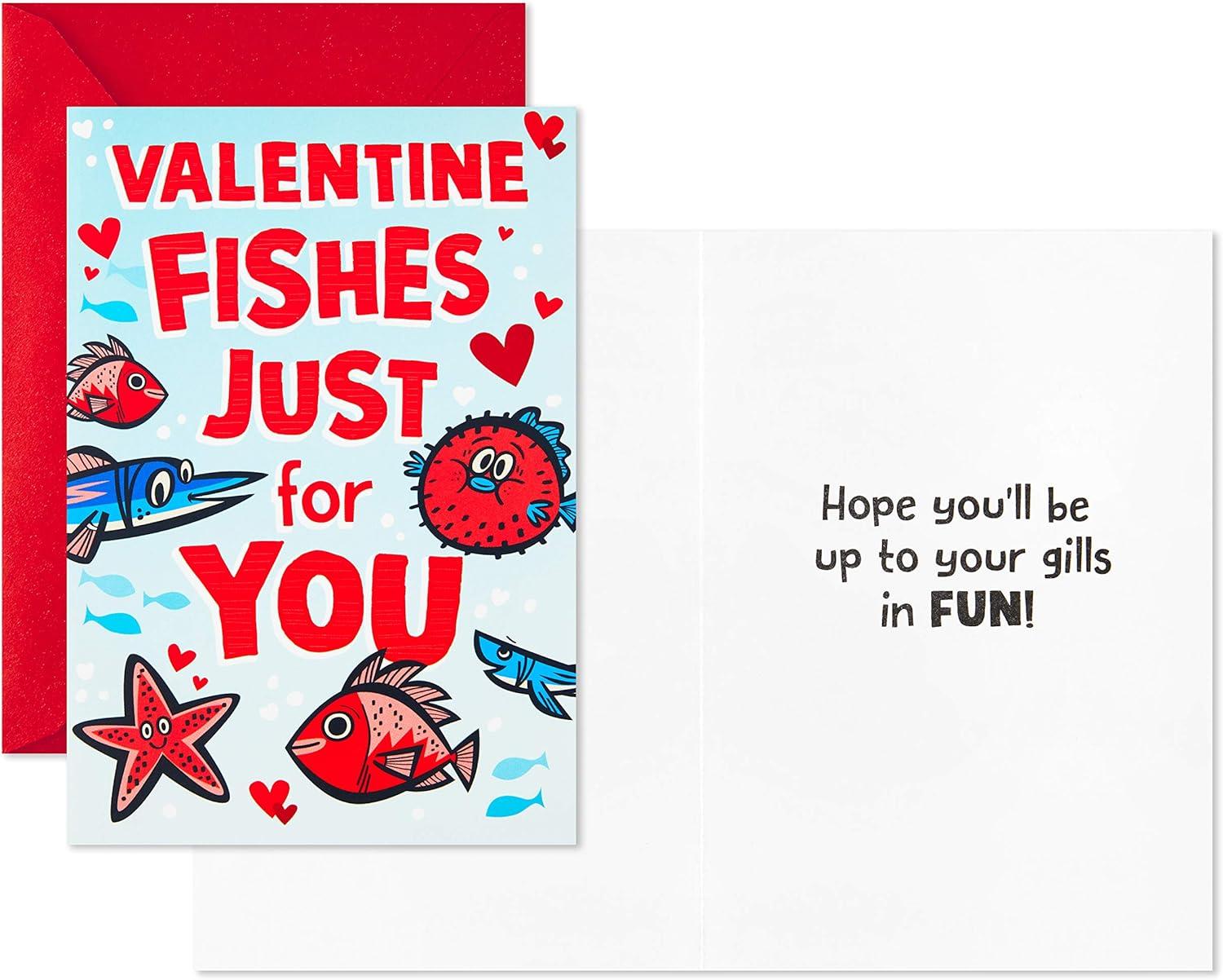 Hallmark Valentines Day Cards for Kids School, Sea Creatures (8 Classroom Valentines with Envelopes)(Blue and Red)