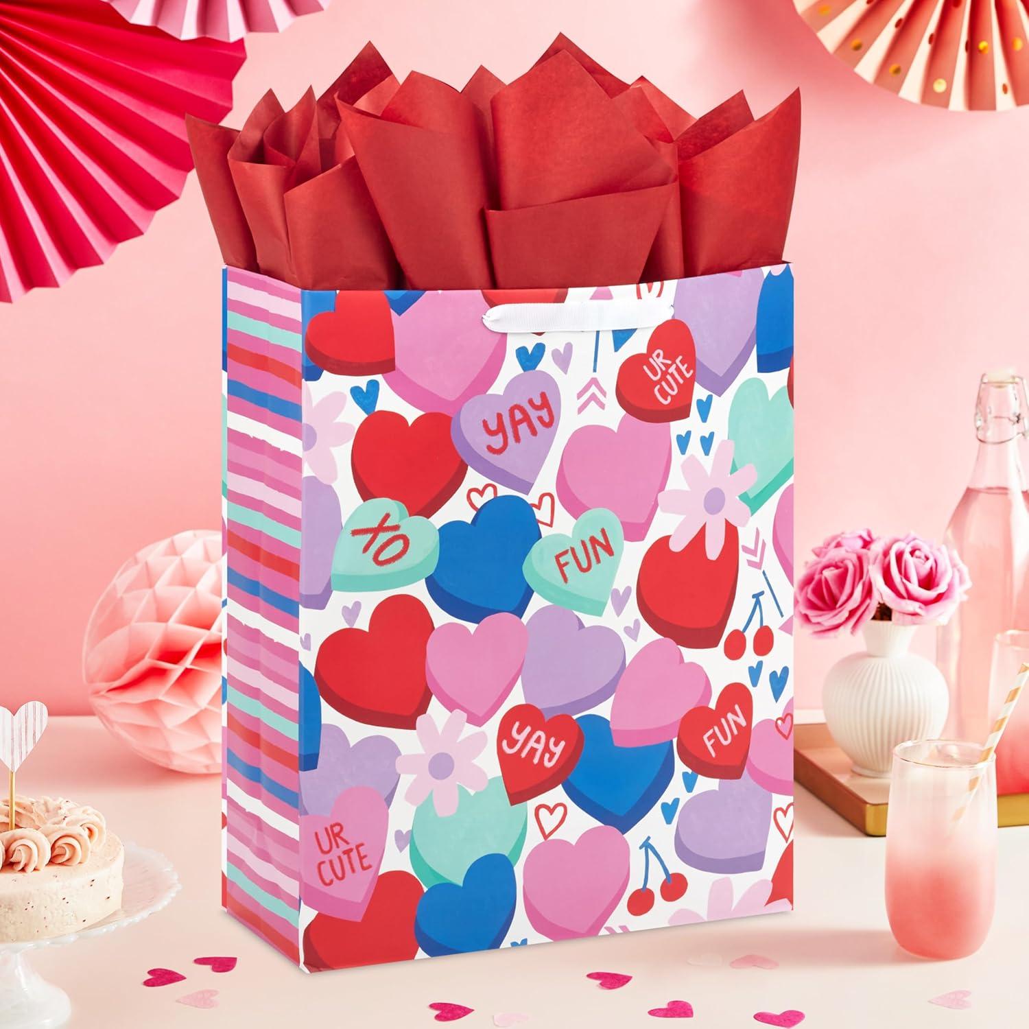 Hallmark 15″ Extra Large Valentine’s Day Gift Bag with Tissue Paper (Candy Hearts)(Candy Hearts)