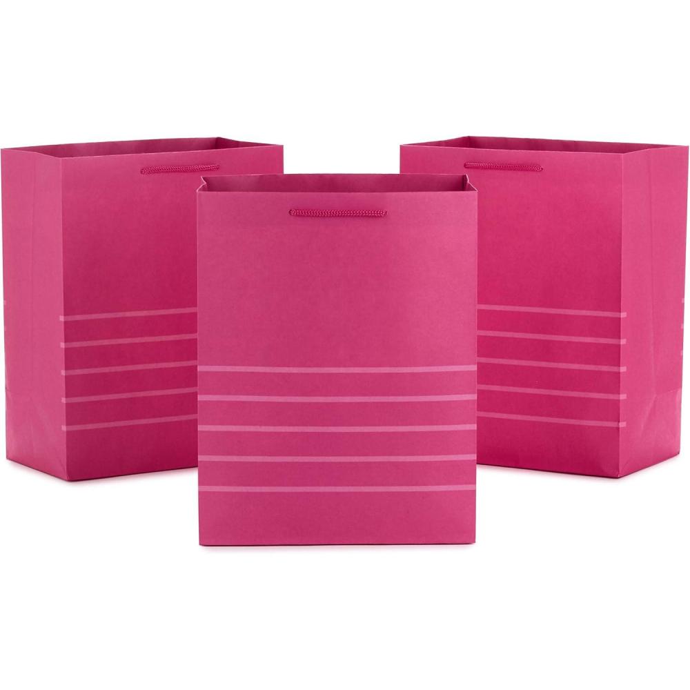 Hallmark 11″ Large Pink Gift Bags (Pack of 3 Bags, Stripes) for Birthdays, Mother’s Day, Valentine’s Day, Baby Showers, Bridal Showers, Bridesmaids Gifts, Bachelorette Parties(Pink)