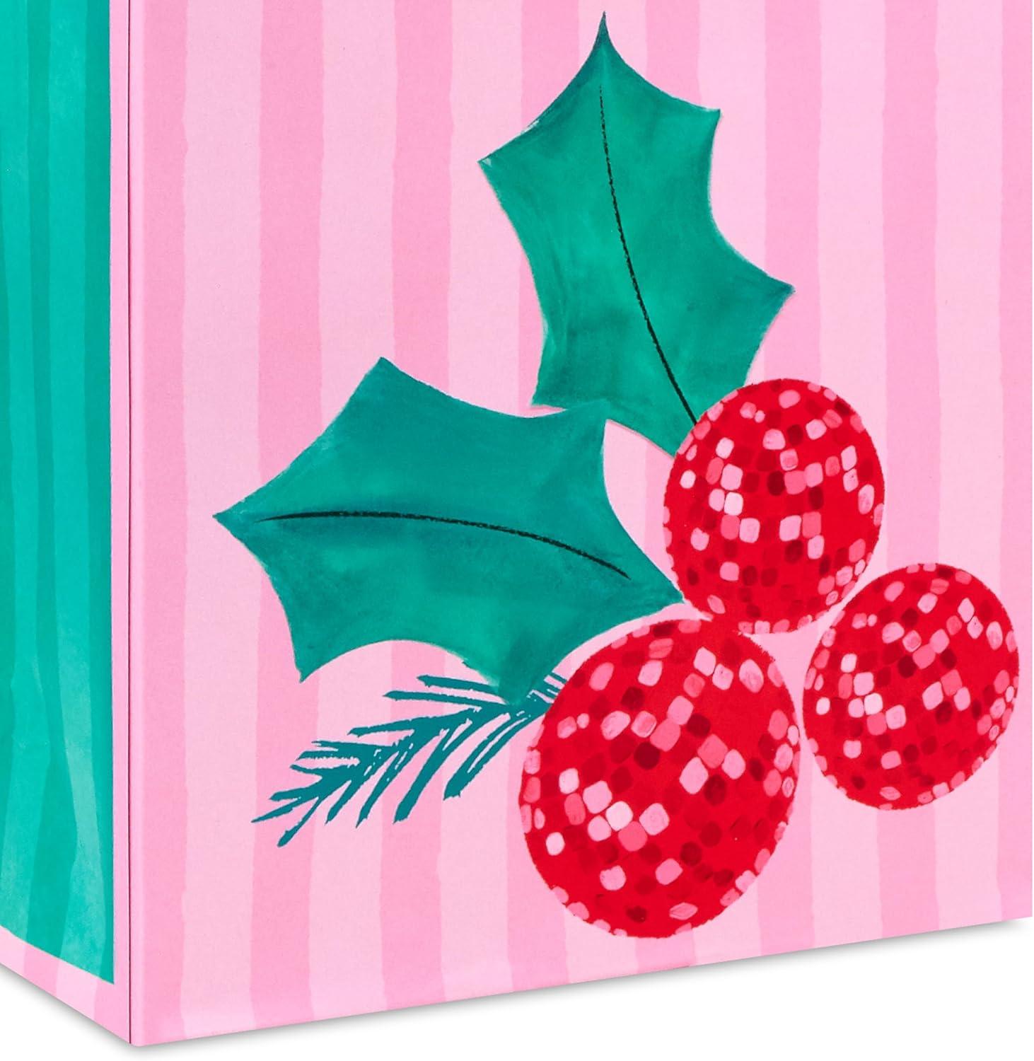 Hallmark 11″ Large Pink Gift Bags (Pack of 3 Bags, Stripes) for Birthdays, Mother’s Day, Valentine’s Day, Baby Showers, Bridal Showers, Bridesmaids Gifts, Bachelorette Parties(Plaid Disco Holly Happy HoliYay)