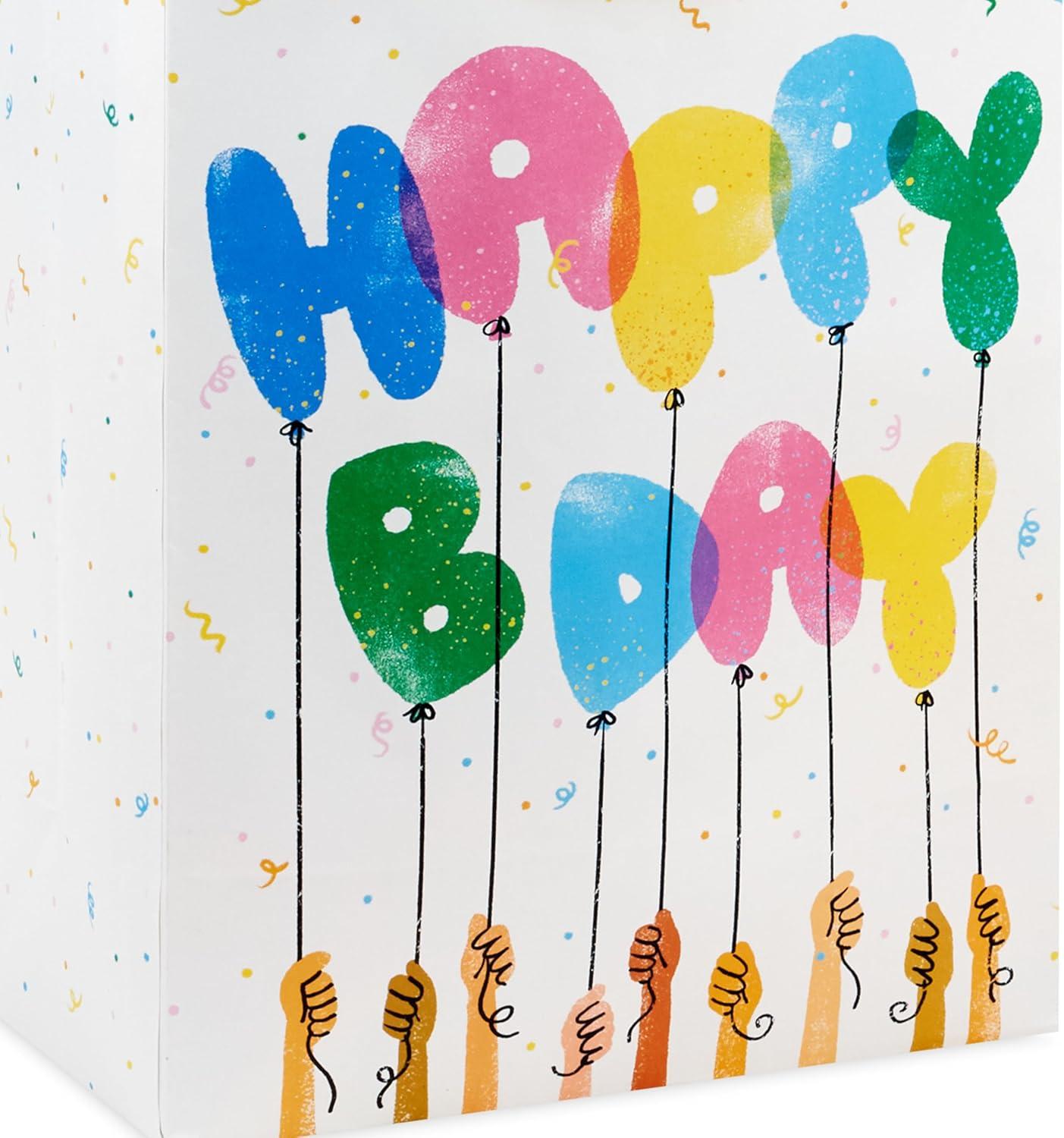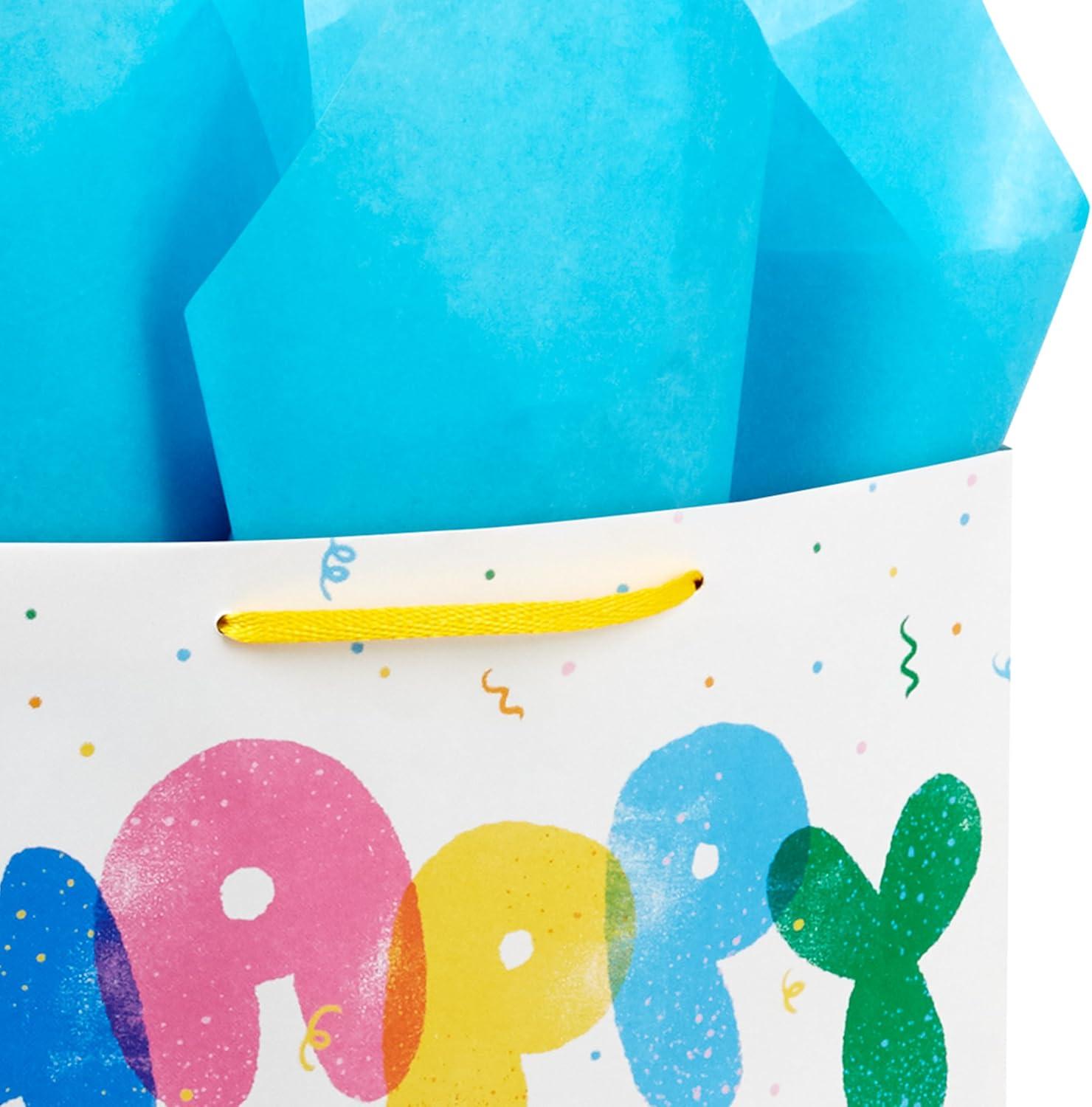 Hallmark 13″ Large Heart Gift Bag with Wedding Card and Tissue Paper (Best Wishes Gold and White, Hearts) for Weddings, Bridal Showers, Engagements(Happy Bday Balloons)