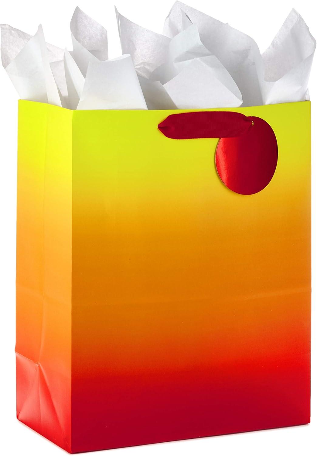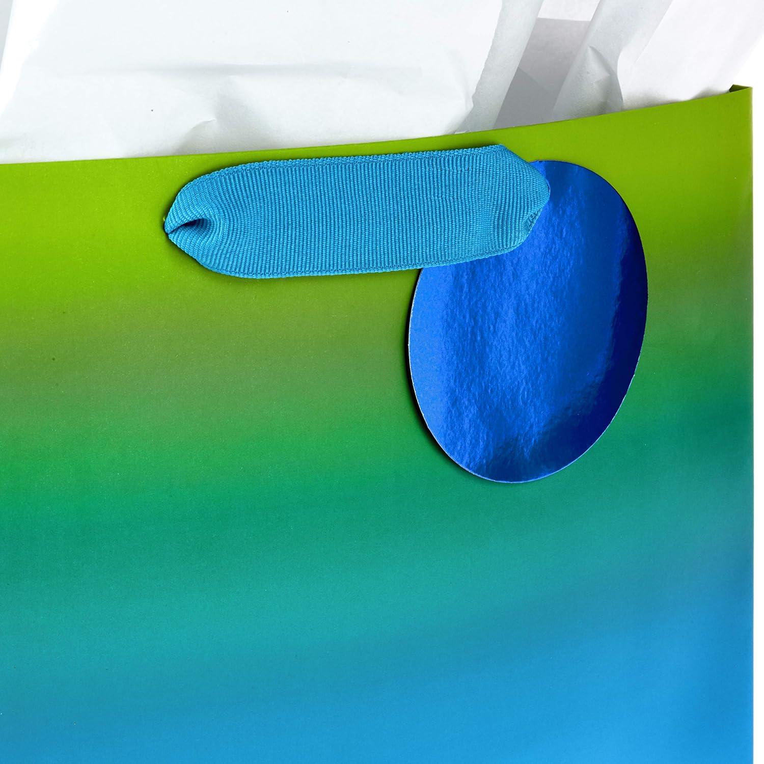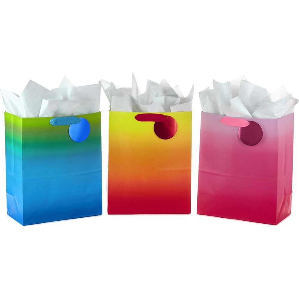 Celebrate kids, adults, parents, coworkers, best friends and more with beautifully bold metallic gift bags. This set of 3 large gift bags features rainbow ombre designs in green and blue, gold and silver, and purple and red. Great to have on hand for birthdays, bridal showers, Valentine's Day, weddings, baby showers and more. The Hallmark brand is widely recognized as the very best for greeting cards, gift wrap, and more. For more than 100 years, Hallmark has been helping its customers make everyday moments more beautiful and celebrations more joyful.
