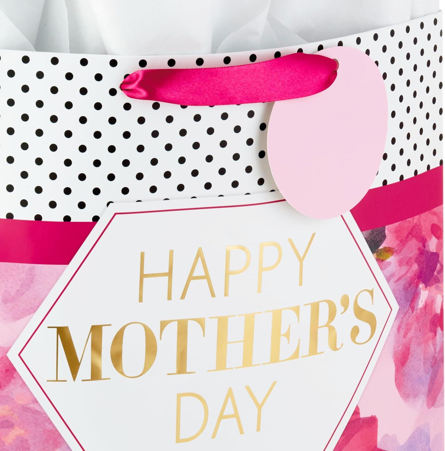 Hallmark 13″ Large Mother’s Day Gift Bag with Tissue Paper (Blush Pink and Gold) for Mom, Grandma, Nana, Mom Squad(Floral with Dots)