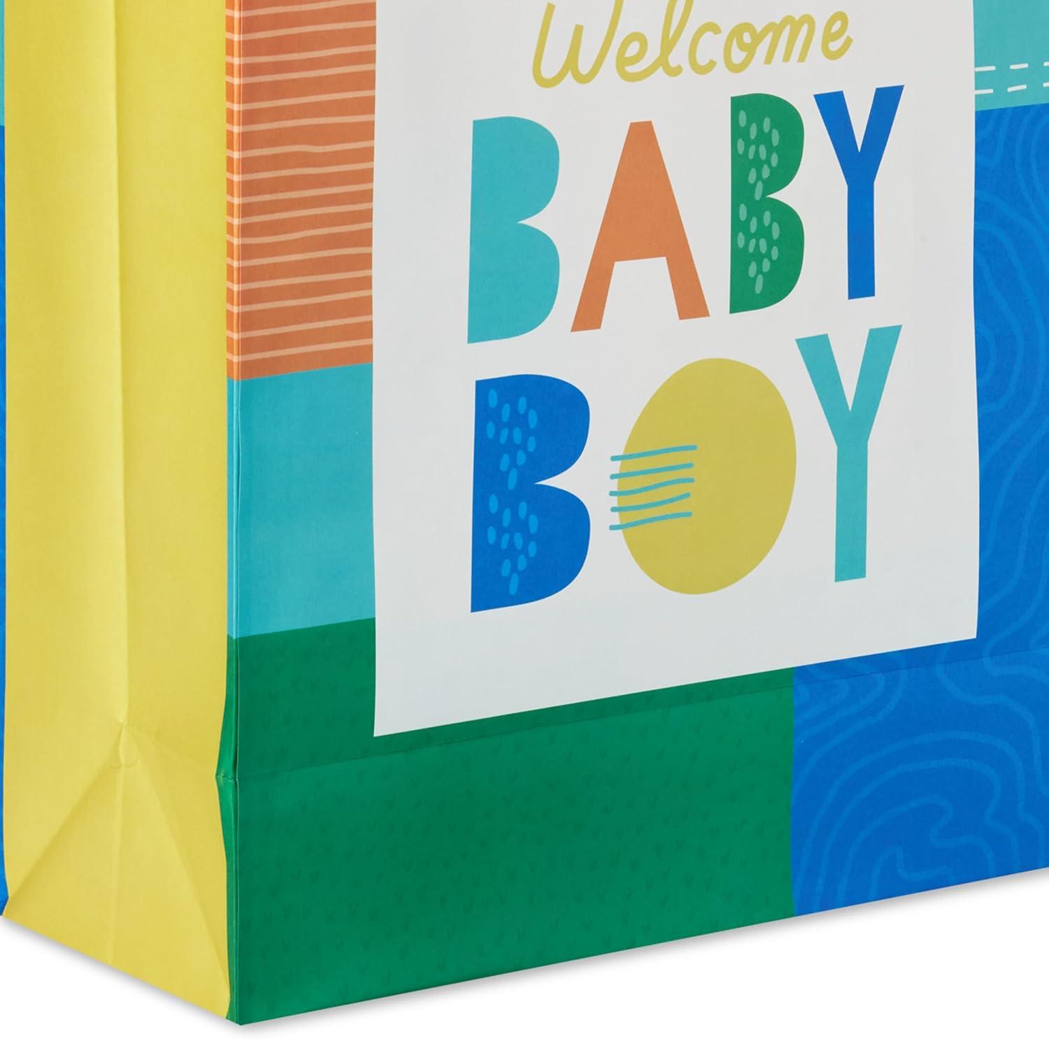 Hallmark 15″ Extra Large Baby Gift Bag with Tissue Paper (Woodland Animals) for Baby Showers, New Parents and More(Welcome Baby Boy)