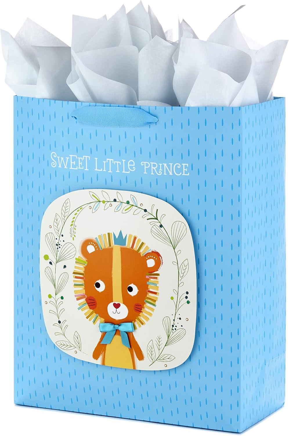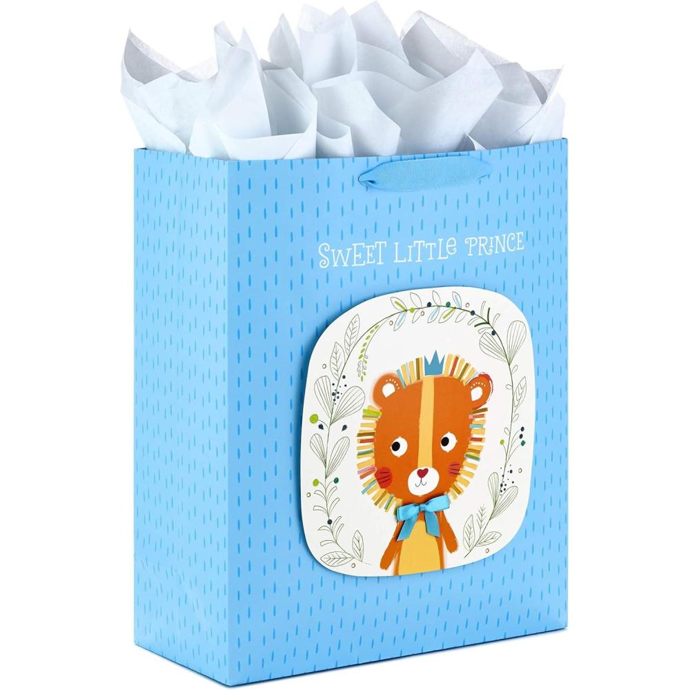 Hallmark 15″ Extra Large Gift Bag with Tissue Paper (Sweet Little Prince Lion) for Baby Showers, Kids Birthdays and More(Sweet Little Prince)