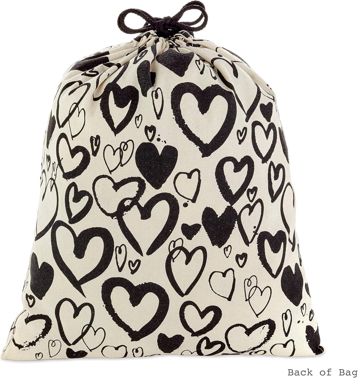 Hallmark 19″ Large Canvas Bag with Drawstring (Ivory with Black Hearts) for Valentines Day, Weddings, Bridal Showers, Anniversary and More(Black Hearts)