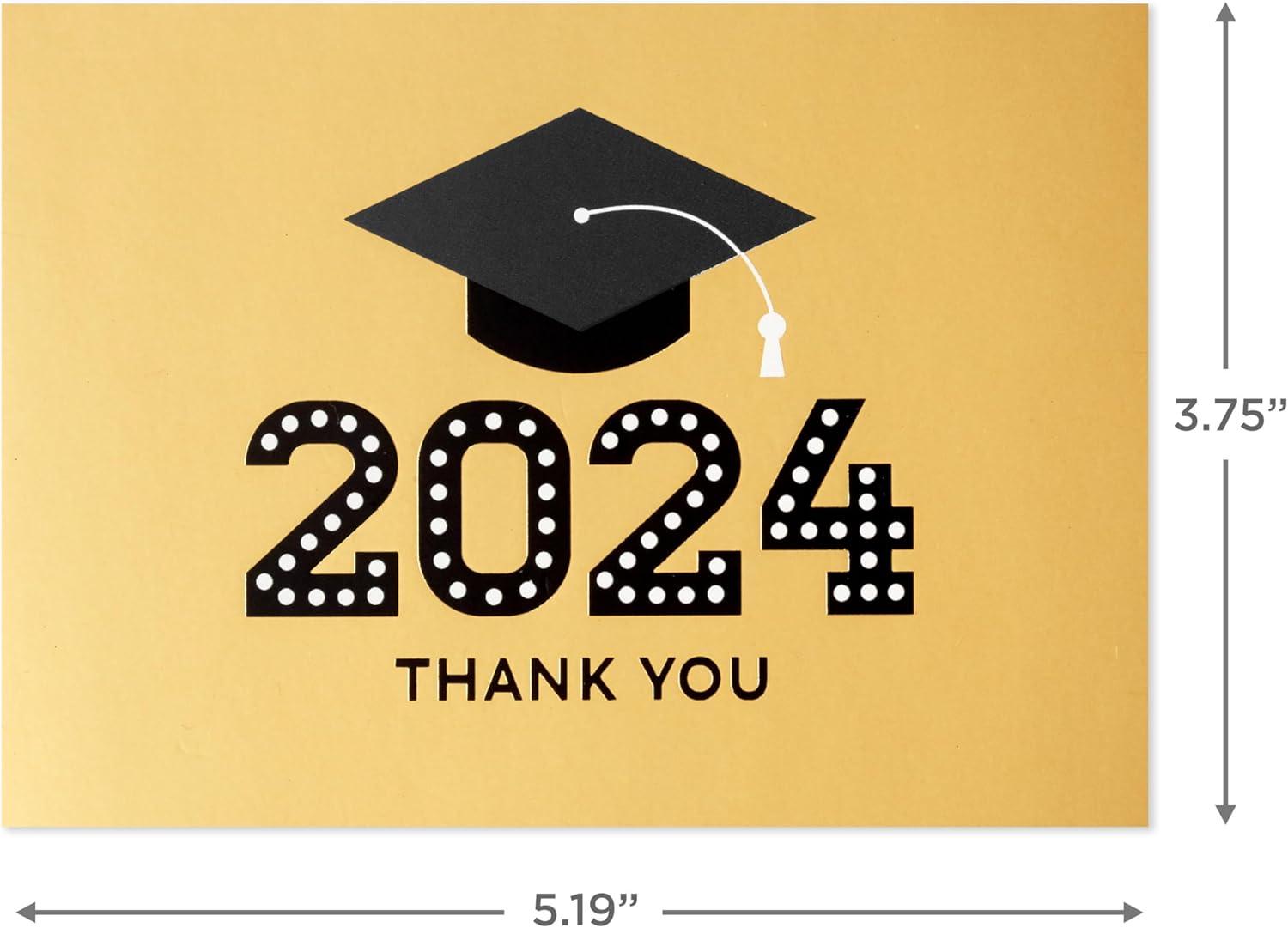 Hallmark 2025 Bulk Graduation Thank You Cards, Black and Gold (40 Count with Envelopes) for Grad Announcements, Invitations, Thanks(Classic)