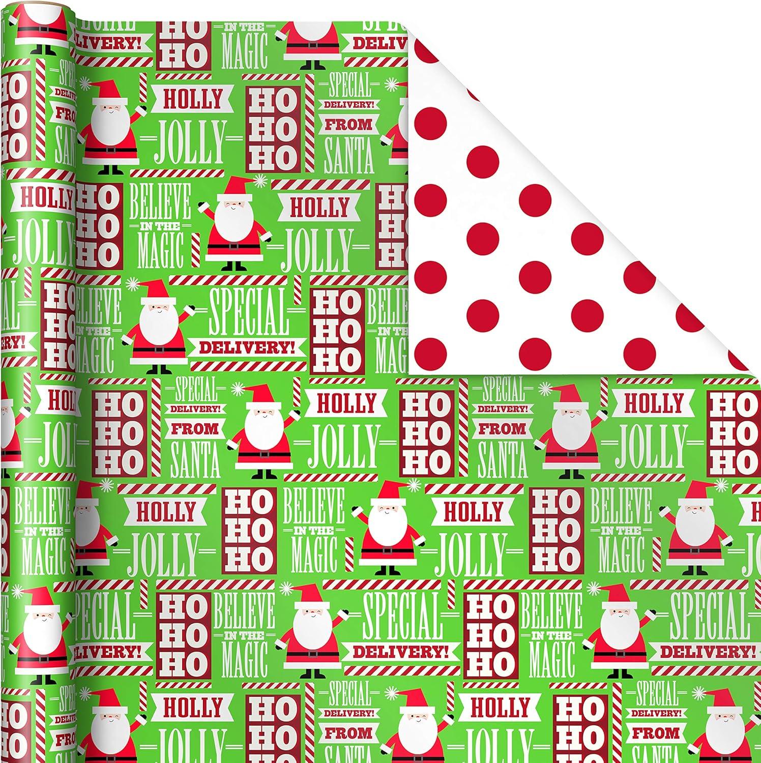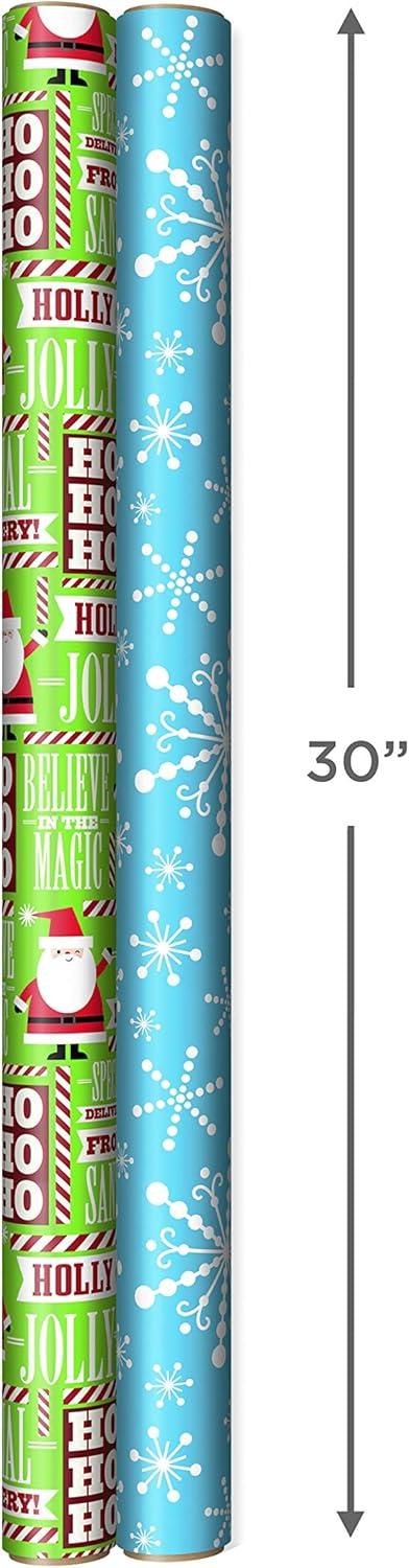 Hallmark 26″ Reusable Christmas Gift Wrap (1 Fabric Wrap: Blue Snowflakes on Natural Cotton) for Holiday Parties, Hanukkah, Winter Weddings(Green Foliage)