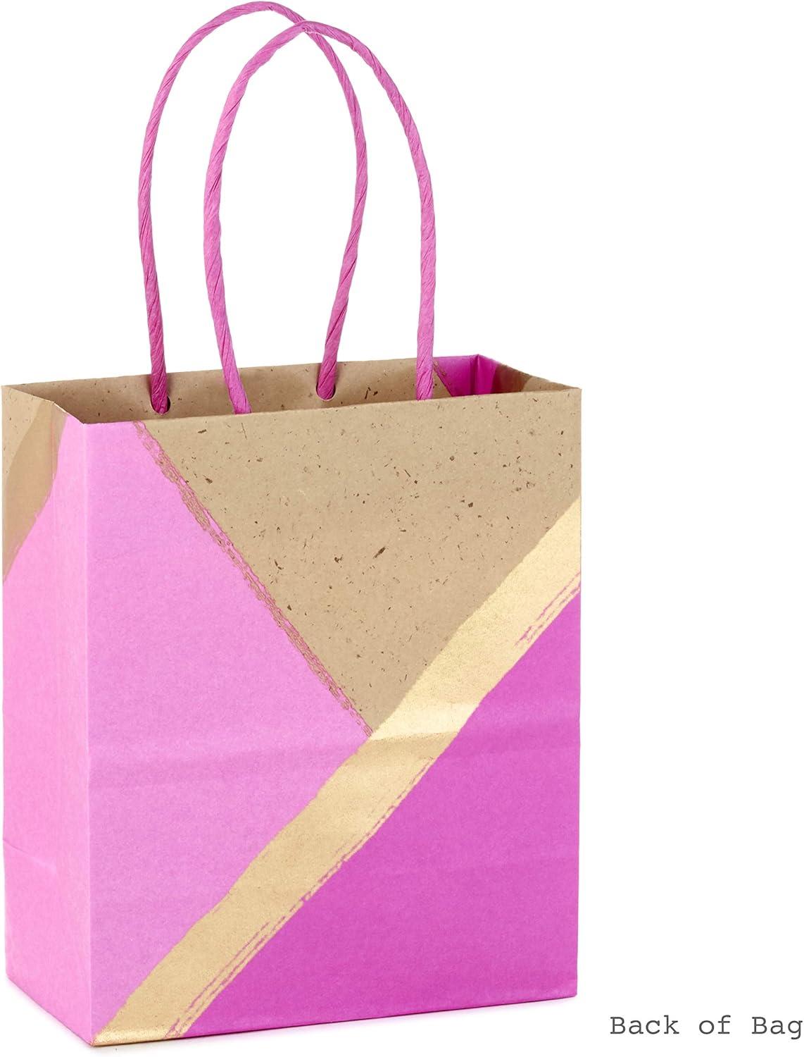 Hallmark 6″ Small Paper Gift Bags, 8-Pack (White and Kraft) for Birthdays, Christmas, Weddings, Graduations, Baby Showers, Bridal Showers, Care Packages and More(Pink Gold)