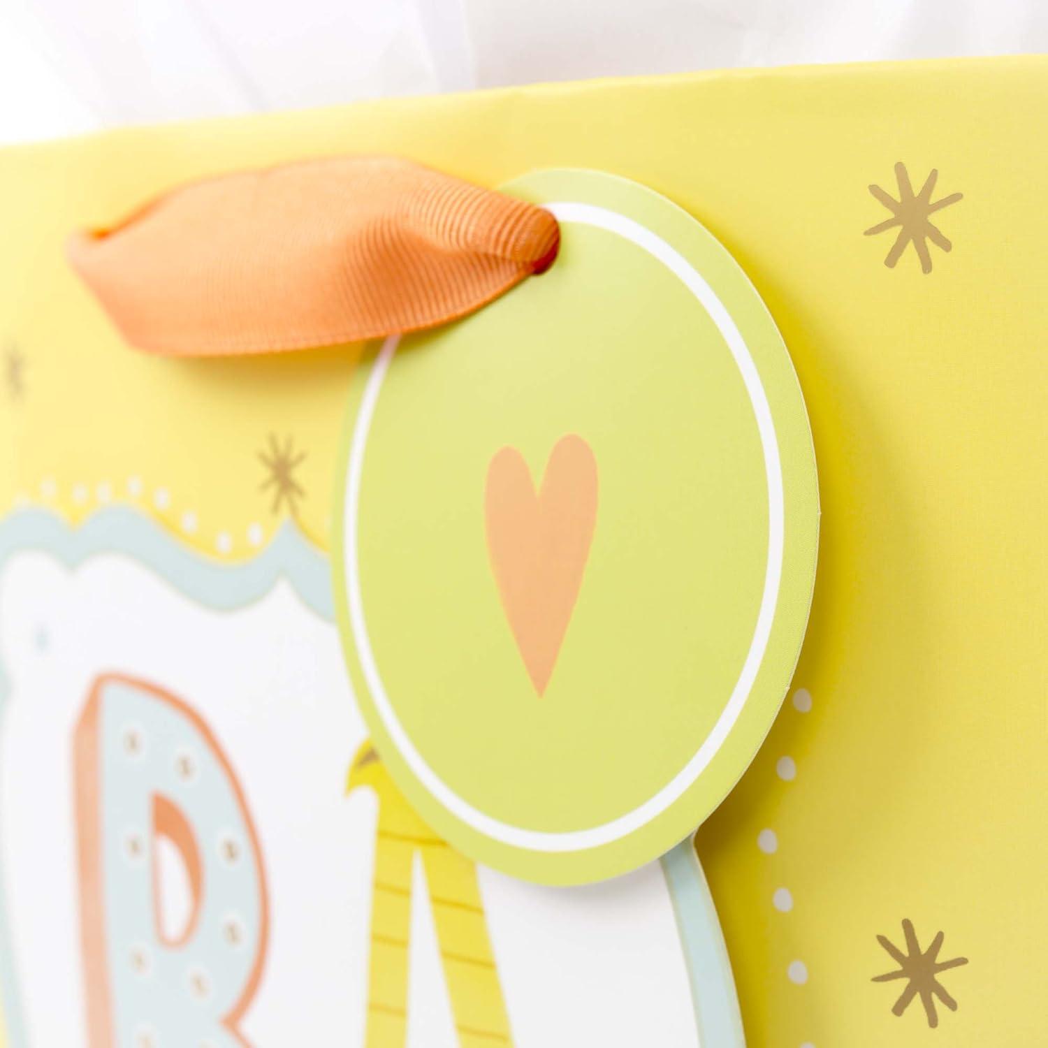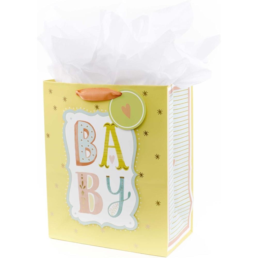 Hallmark 9″ Medium Baby Gift Bag with Tissue Paper – Baby Banner in Grey, Pink and Blue for Baby Showers, New Parents, and More(Baby Yellow)