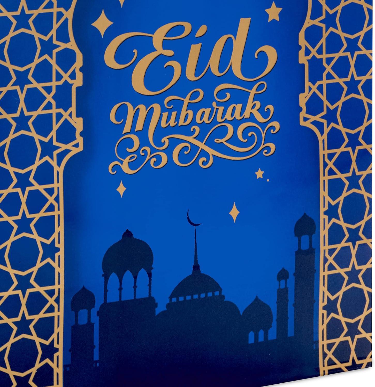 Celebrate the end of Ramadan with this bundle of 4 Eid gift bags. Featuring gold “Eid Mubarak” lettering on red, blue, green and purple, this set of medium gift bags with handles is great to have on hand for parties, dinners and other celebrations with friends and family. The Hallmark brand is widely recognized as the very best for greeting cards, gift wrap, and more. For more than 100 years, Hallmark has been helping its customers make everyday moments more beautiful and celebrations more joyful.