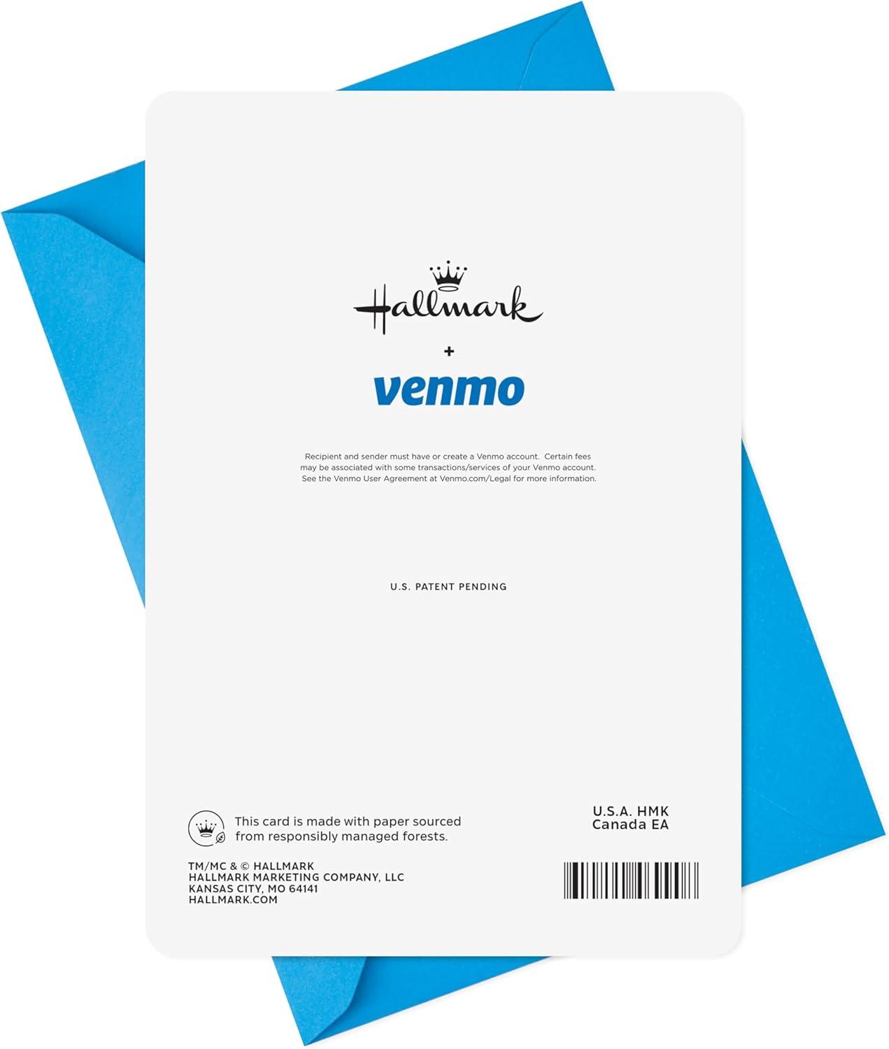 Send money and a smile with Hallmark + Venmo Cards. Just scan the unique code in the card, choose the amount you want to give, and write a message. When the recipient opens it, they'll scan the code to access their money with just a few taps – no more lost checks or ATM runs! All-occasion card is perfect for birthdays, graduations, holidays, and other joyous occasions. The Hallmark brand is widely recognized as the very best for greeting cards, gift wrap, and more. For more than 100 years, Hallmark has been helping its customers make everyday moments more beautiful and celebrations more joyful.