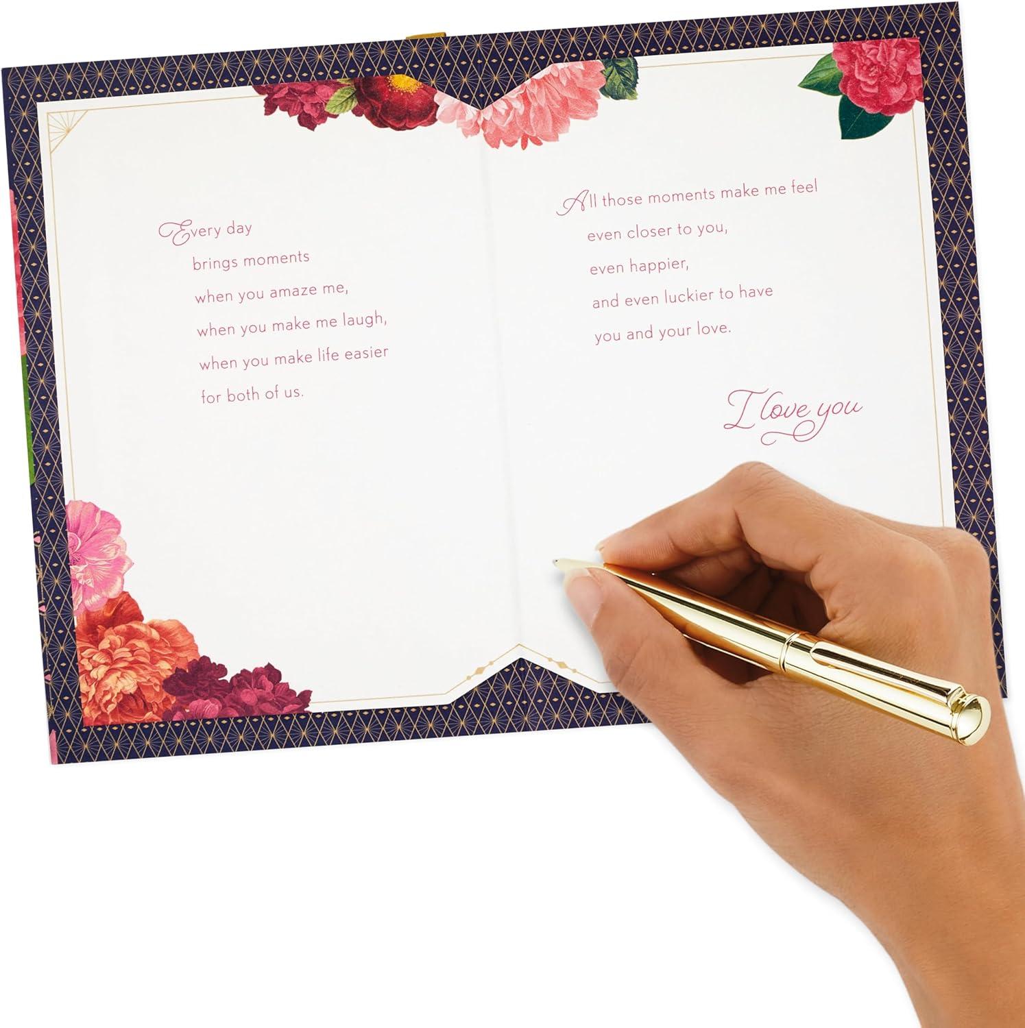Remind your husband, wife, girlfriend, boyfriend, or romantic partner how much you love them and your life together with a touching anniversary card. A sweet-as-can-be design and endearing sentiment make this the perfect way to celebrate another year of loving one another. The Hallmark brand is widely recognized as the very best for greeting cards, gift wrap, and more. For more than 100 years, Hallmark has been helping its customers make everyday moments more beautiful and celebrations more joyful.