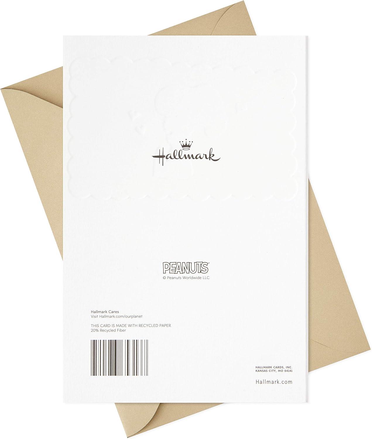 Fans of Charlie Brown and co. will love this anniversary card with sweet illustrations depicting Peanuts characters with messages about what love is. A charming design and heartwarming sentiment make this the perfect way to celebrate another year of loving one another. The Hallmark brand is widely recognized as the very best for greeting cards, gift wrap, and more. For more than 100 years, Hallmark has been helping its customers make everyday moments more beautiful and celebrations more joyful.