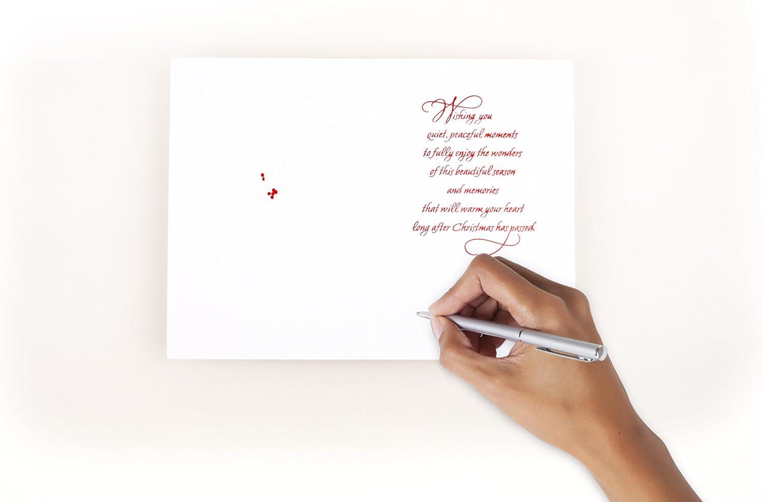 Send warm wishes to your loved ones this holiday season with an elegant Christmas card featuring glittery snowflakes and a ribbon embellishment. With a pretty design and sincere sentiment, there's plenty of room to write your own season's greetings inside. Whether they live next door or across the world, your friends and family are sure to appreciate this Christmas card from you during the most wonderful time of the year. The Hallmark brand is widely recognized as the very best for greeting cards, gift wrap, and more. For more than 100 years, Hallmark has been helping its customers make everyday moments more beautiful and celebrations more joyful.